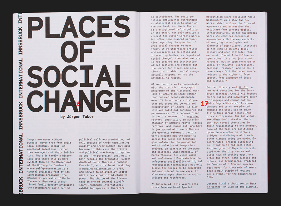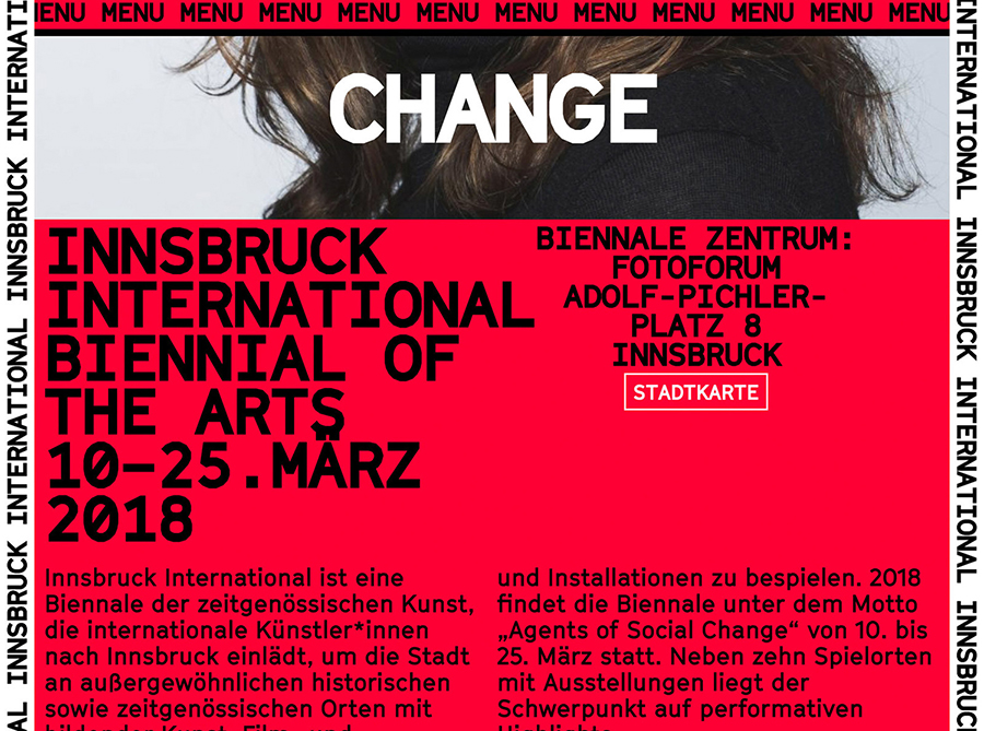 Innsbruck International, Biennial of the Arts is a 16-day event set over 10 locations presenting the work of over 20 international artists who are invited to make use of Innsbruck’s historical and contemporary venues.