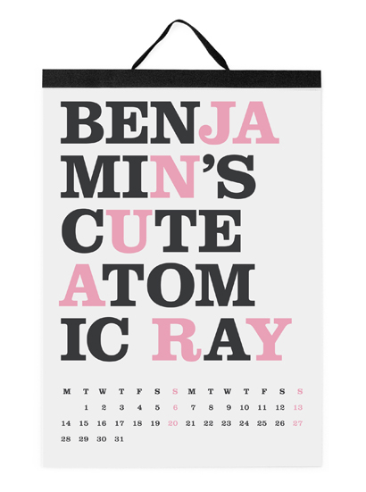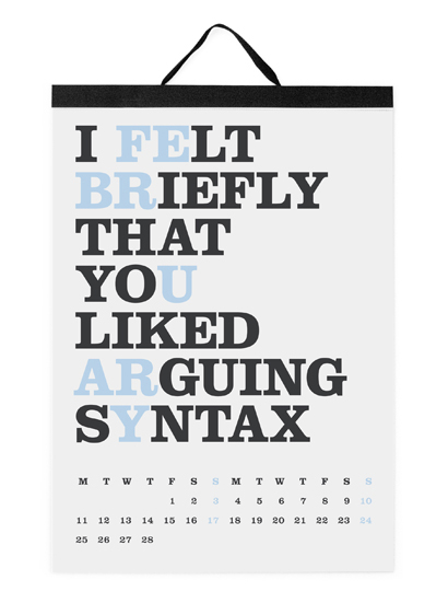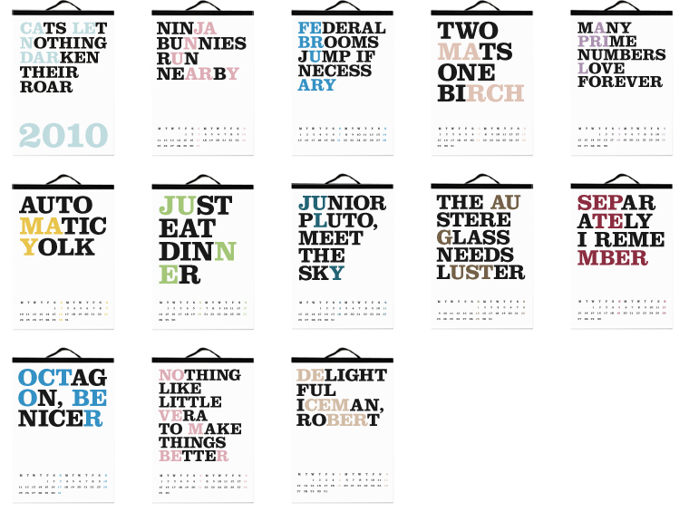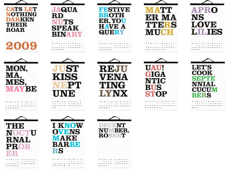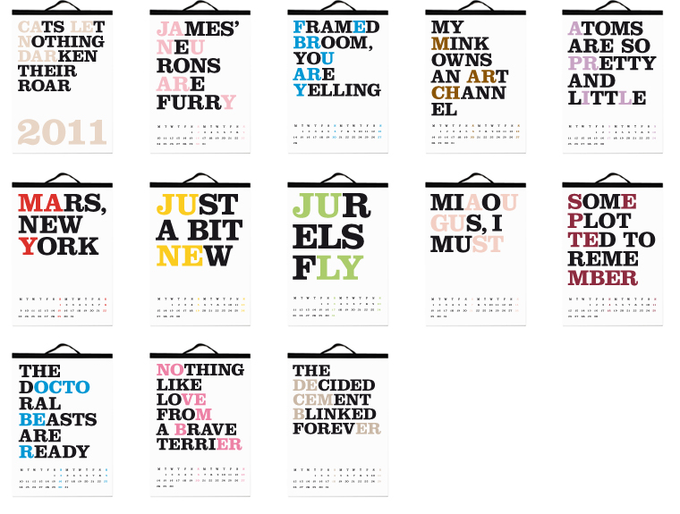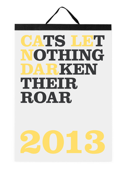 The 'Cats Let Nothing Darken Their Roar’ calendar, created by Noa Bembibre, was first presented in the fall of 2005 and it introduced twelve phrases that hid the name of each month within.