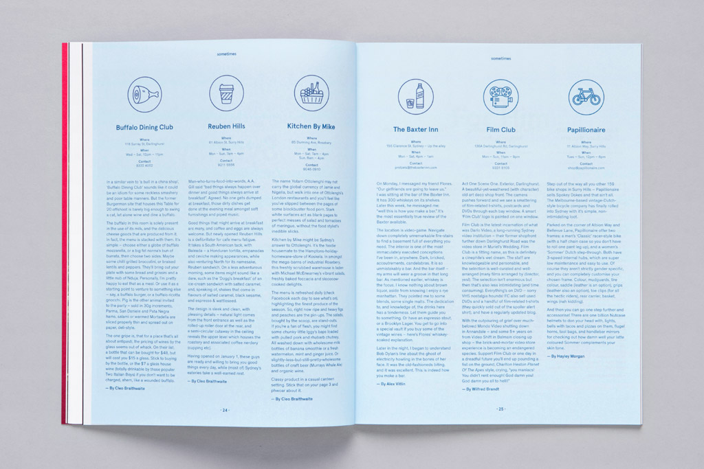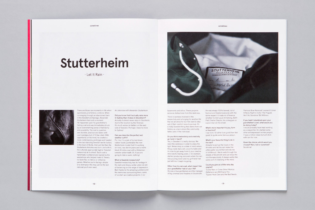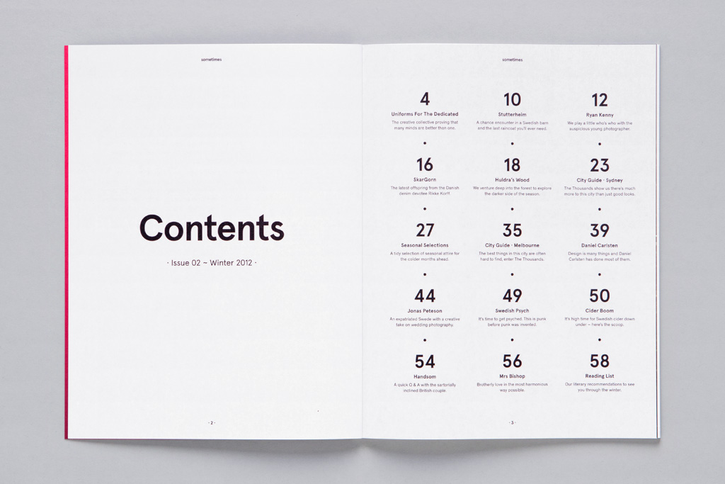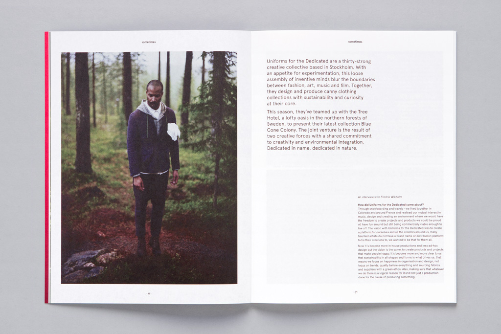 “Sometimes is a collection of conversations on fashion, art & contemporary culture. The magazine is created for Somewhere and Somedays, two stores in Australia that specialize in Scandinavian clothing. Sometimes issue two features interviews with Scandinavian brands, designers, photographers, and musicians, city guides for Sydney and Melbourne, and articles on contemporary fashion and music.