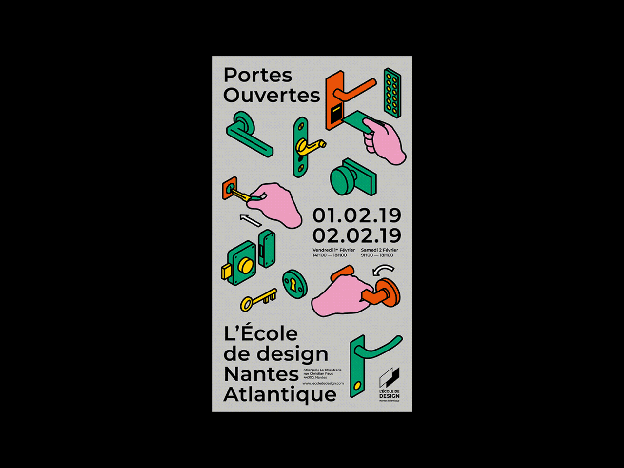 L’École de Design Nantes Atlantique (Design School Nantes) asked me to make the poster for their open day 2019. I had a total freedom in this project to use any font I wanted even if Montserrat is the only typeface used in the identity of the school.