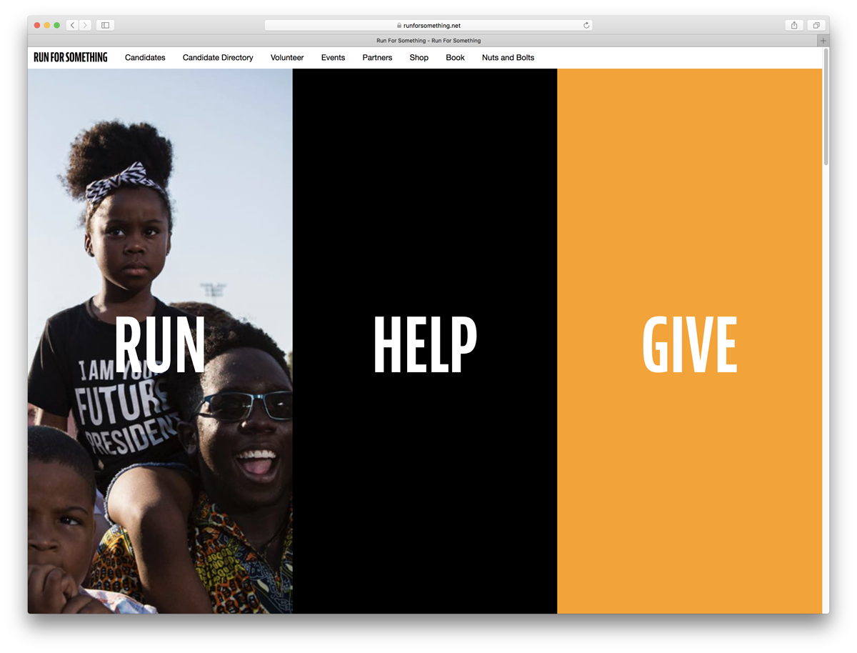 Run for Something is a progressive American political organization dedicated to recruiting and supporting young candidates running for down-ballot office. — Wikipedia