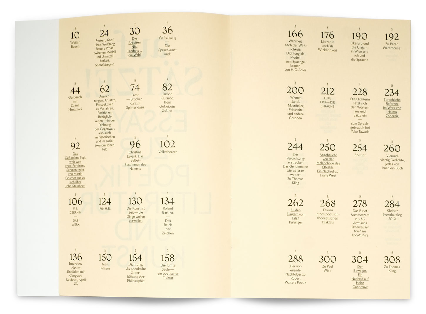 Ferdinand Schmatz is a writer from Vienna. We proudly designed his latest collection of essays, called aufSÄTZE!. Our task was to provide space for Schmatz’s thoughts without distraction. Headlines of the articles about poetics, literature, and art each have their own formatting, allowing the typeface to dance and buzz. (by Studio VIE)