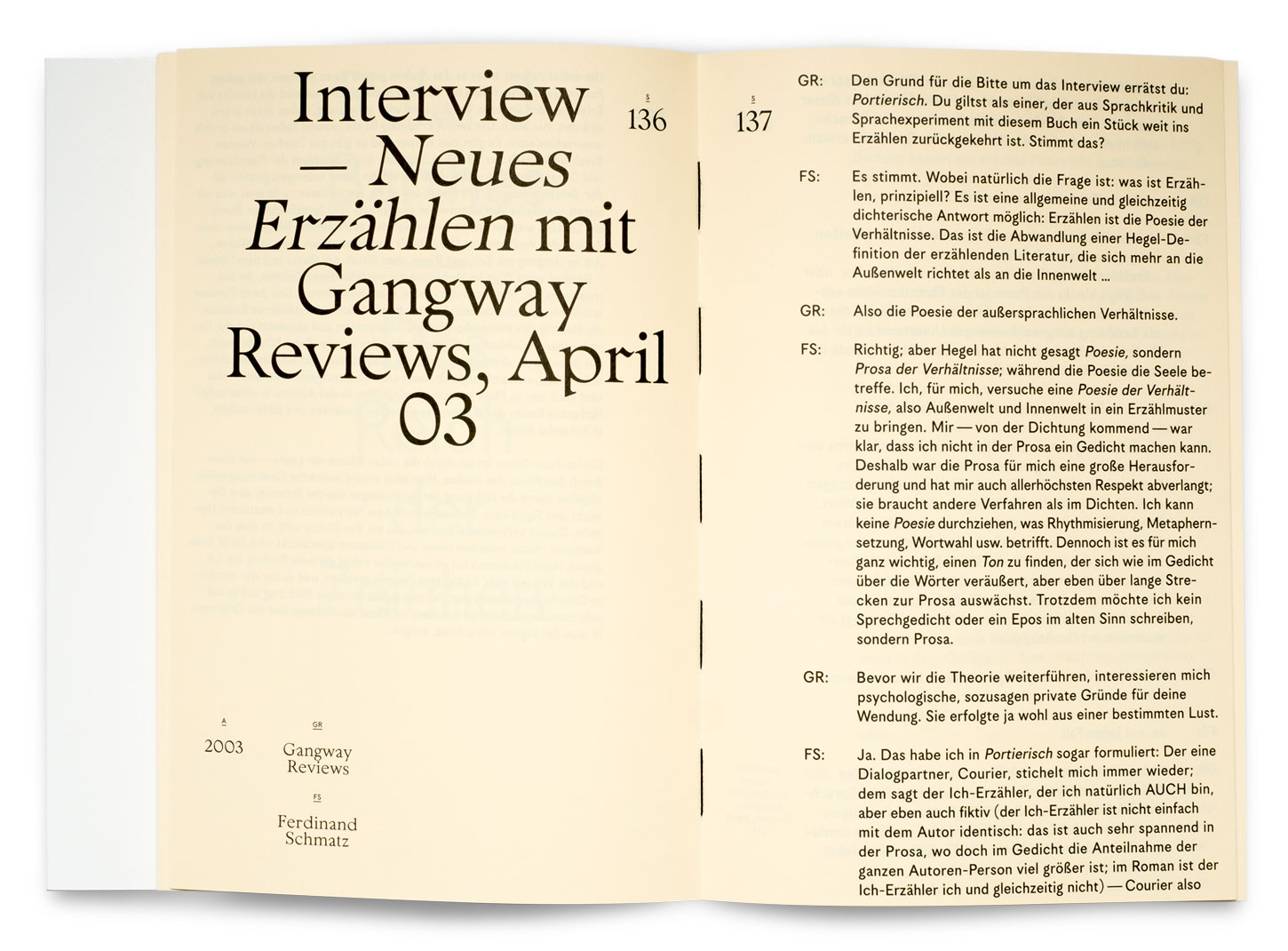 This collection of essays on poetry, literature and art by Ferdinand Schmatz and Gerald Bast, designed by studio VIE impressively, and excellently set in Korpus Grotesk and Rural has been honoured as one of Austria’s most beautiful books 2016.