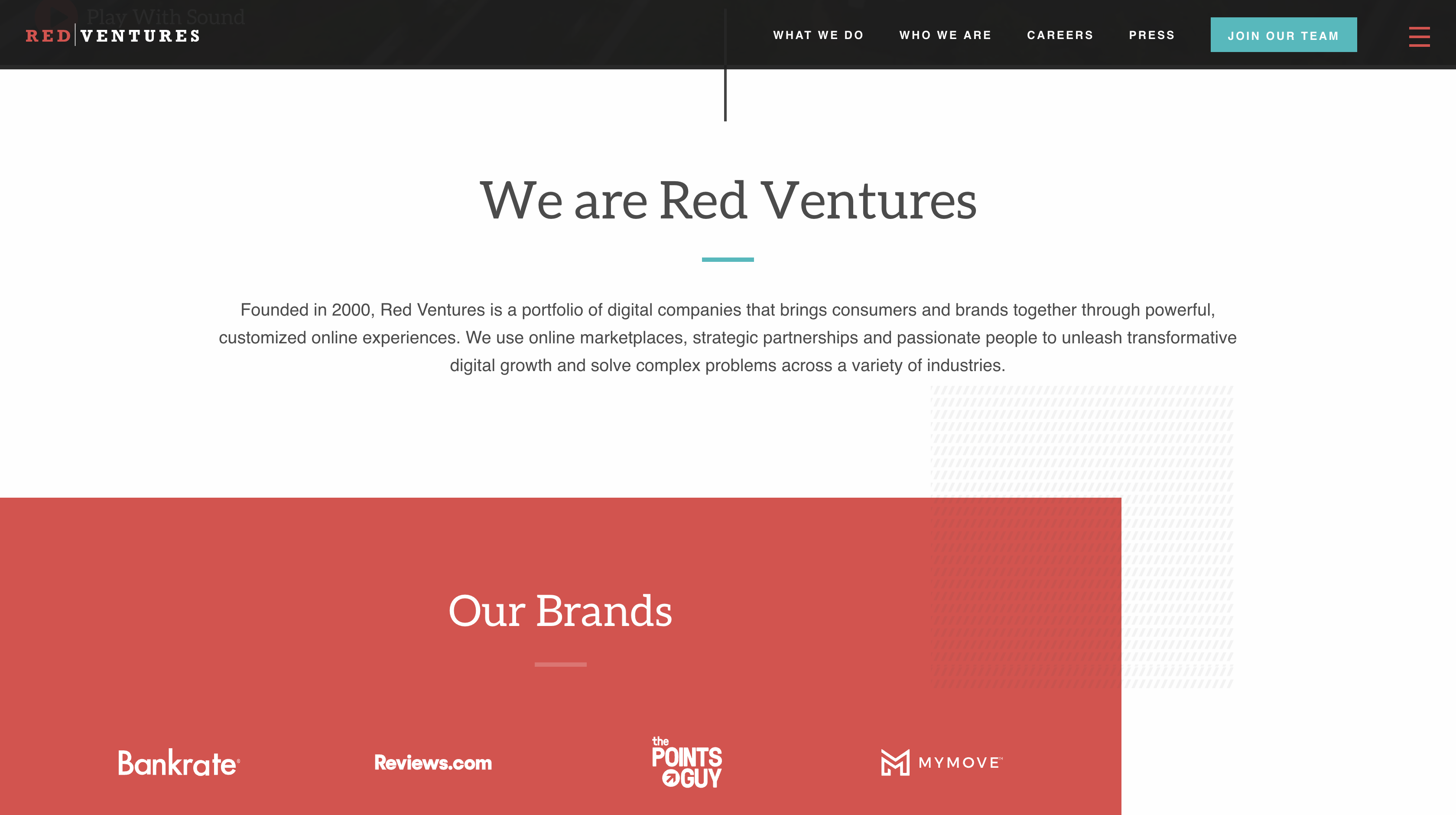 Red Ventures is a marketing company incorporated in the State of South Carolina. The company acquires customers for brands in the home services, financial services, and healthcare industries.