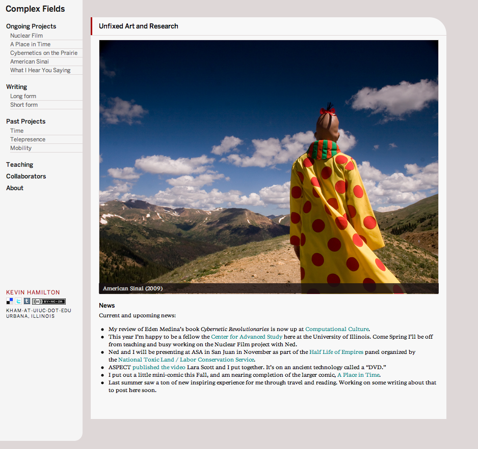 Complex Fields website Contributed by Webtype on Dec 8th, 2012. Artwork published in 2011. Source: complexfields.org License: All Rights Reserved. Artist and researcher Kevin Hamilton is using Benton Sans and Poynter Serif RE for his website Complex Fields. Source: complexfields.org License: All Rights Reserved. Source: complexfields.org License: All Rights Reserved. Typefaces More about Benton SansGet Benton SansMore about Poynter Serif REGet Poynter Serif RE Formats Web (5619) Topics Science/Nature (1120) Art (4687) Tagged withresearch (230)webfonts (449)Webtype (73)portfolios (772)personal websites (264) In SetsWebtype (Webtype) (241) Post a comment Name Email – will not be published Website Your response Submit Comment More Benton Sans in use Aloom – the wow lab2024MR JobimContributed by Maria Ruth Jobim Los Angeles Times, “CAL 101: The 101 Best California Experiences” special section2023Los Angeles TimesAmy KingTaylor LeContributed by Jamie Otelsberg (OH no Type Co.) Staff Pick The Battery websitec. 2013Design RehabMarkatos MooreContributed by Webtype Sponsor More in Art Paris-Berlin 1900–1933 poster1978Roman CieślewiczContributed by Stéphane Darricau All about Saul Leiter book jacket2018Osamu OuchiContributed by Herb Lubalin Study Center Electrical Banana2012Norman HathawayContributed by Stephen Coles Staff Pick Odyssey: Jack Whitten Sculpture 1963–2017 at The Metropolitan Museum of Artc. 2018Amber NewmanContributed by Blaze Type More in Web Taling 탈잉2020Taling DesignContributed by Minjoo Ham Staff Pick Digdog2017Stanislas WiartContributed by stanislas wiart Collective Futures New York City Website2013MetamaticContributed by Larry Mayorga Eat Curious plant-based foods2023Fiasco DesignContributed by Jamie Otelsberg (OH no Type Co.) More Fonts In Use Piet Calis – Gesprekken met dichters1964Jurriaan SchroferContributed by Matthijs Sluiter Staff Pick Le Ciel, Sep–Dec 20232023Fanny LaulaigneDramaQueensDenis CarrierContributed by Lucas Descroix Staff Pick The Best of Fonts In Use in 20132013Contributed by Stephen Coles Blog Change Matters, Ordem dos Arquitectos2023V-A StudioContributed by SM Foundry Staff Pick