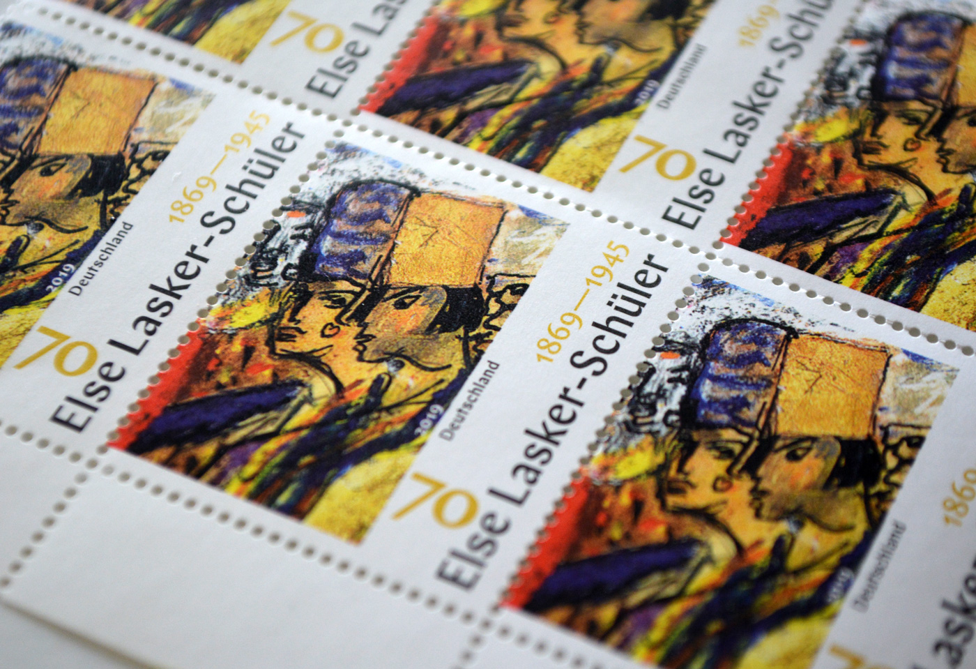Props to Julia Warbanow for choosing contemporary fonts for postage stamps! This is Schick Toikka’s Chap (2016), used for a stamp to be issued on 7 February 2019, commemorating the 150th birthday of Jewish German poet and playwright Else Lasker-Schüler (1869–1945). From the Deutsche Post website: