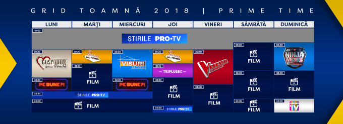 Pro TV, the leading TV channel in Romania, dropped its twenty-two-year-old logo on 28 August 2017 and introduced a new logo with an interpunct (PRO·TV). This was part of a larger corporate rebrand with all eight of Central European Media Enterprises TV channels for Romania (five SD and three HD channels) and, for some of them, introducing the Pro brand (stylised as PRO·). The corporate typeface for all channels is Mostardesign’s Filson.