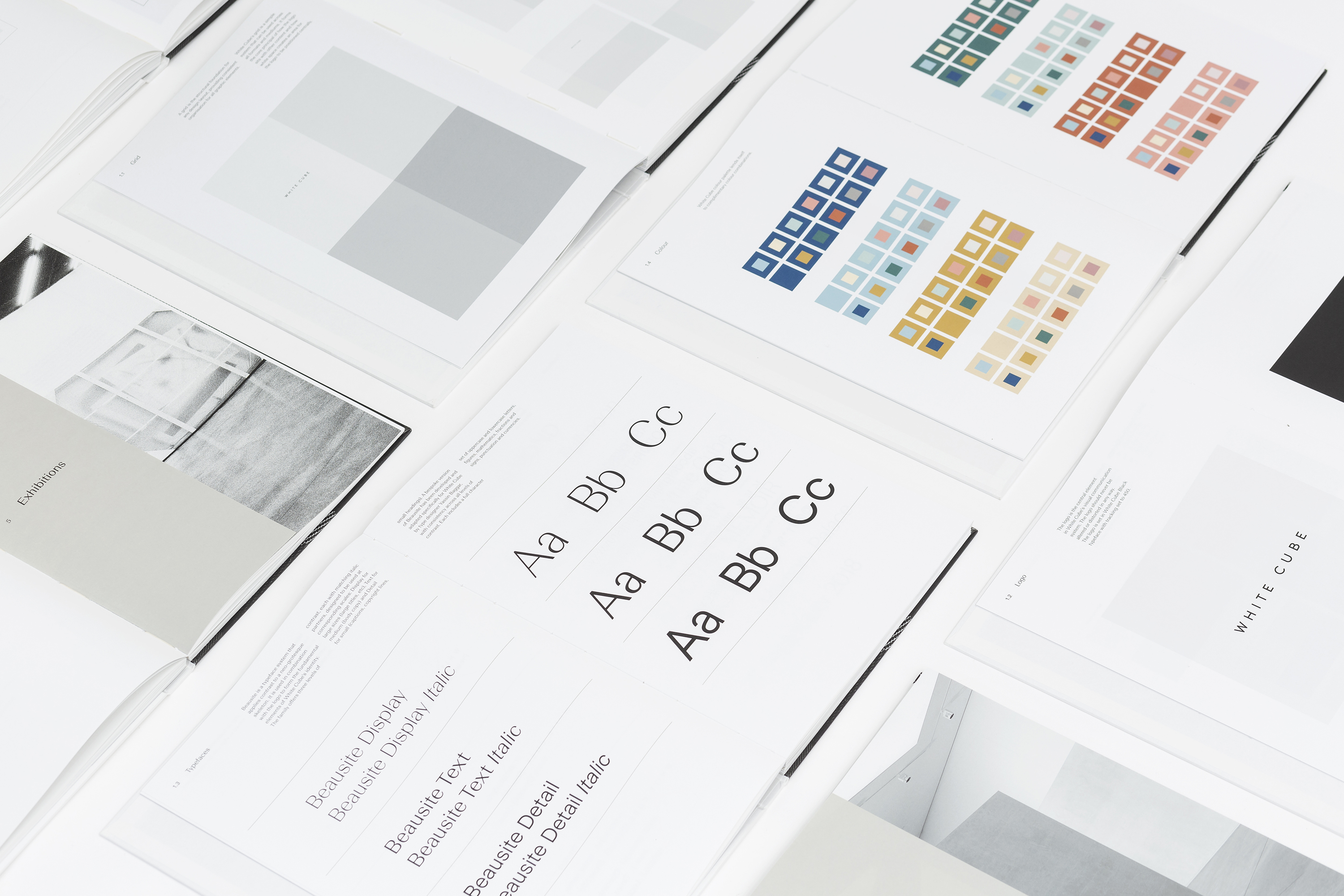 Following the gallery’s credo and name, the visual identity remains discrete, with a simple and elegant typographic treatment based on Beausite customized for the identity by Fatype. The different levels of contrast of the typeface – including the contrastless Beausite Classic – allow for a coherent, flexible and subtle graphic system to be deployed in all the mediums.