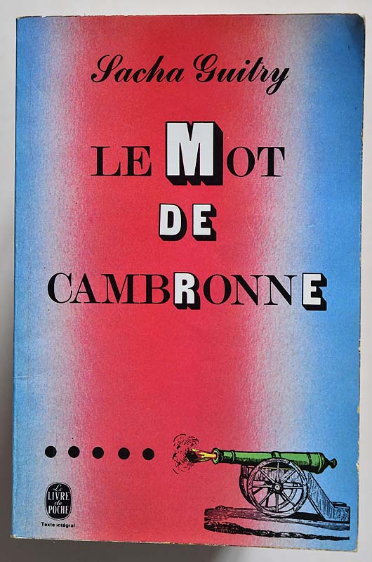 Sacha Guitry’s Le mot de Cambronne is a comedy in one act and one verse, written in 1936 for the Théâtre de la Madeleine. The play was also made into a film, directed by Guitry and released in 1937. In the play, Madame Cambronne – i.e. Mary Osburn, the Scottish nurse who had cared for Cambronne after Waterloo – wants to learn about the famous word named after her husband, but General Cambronne obstinately refuses to repeat it.