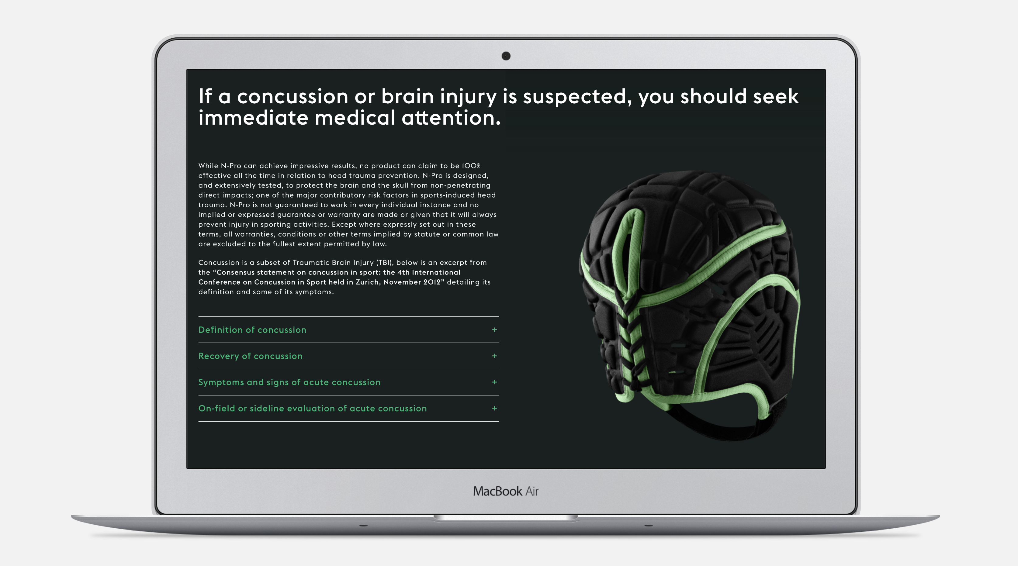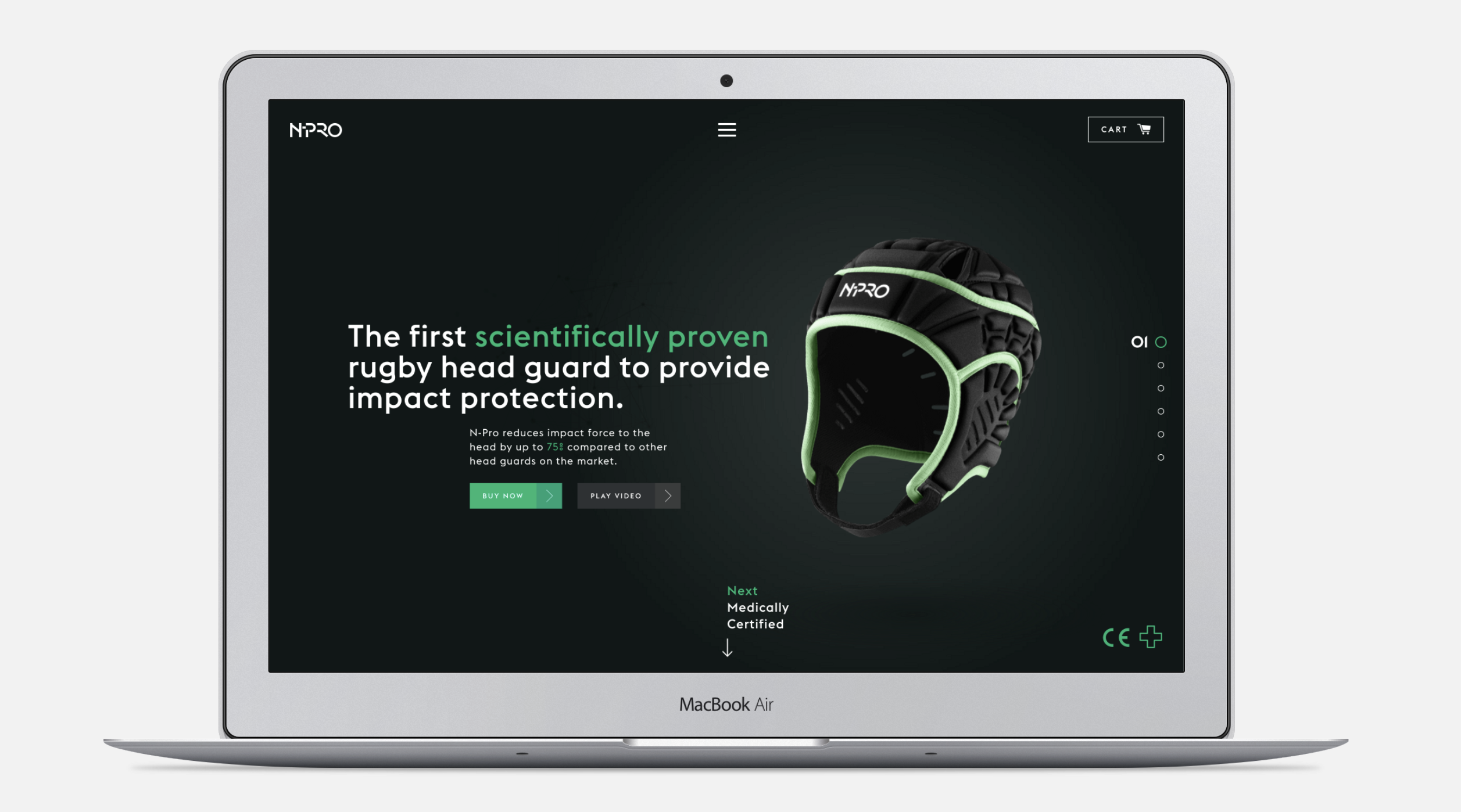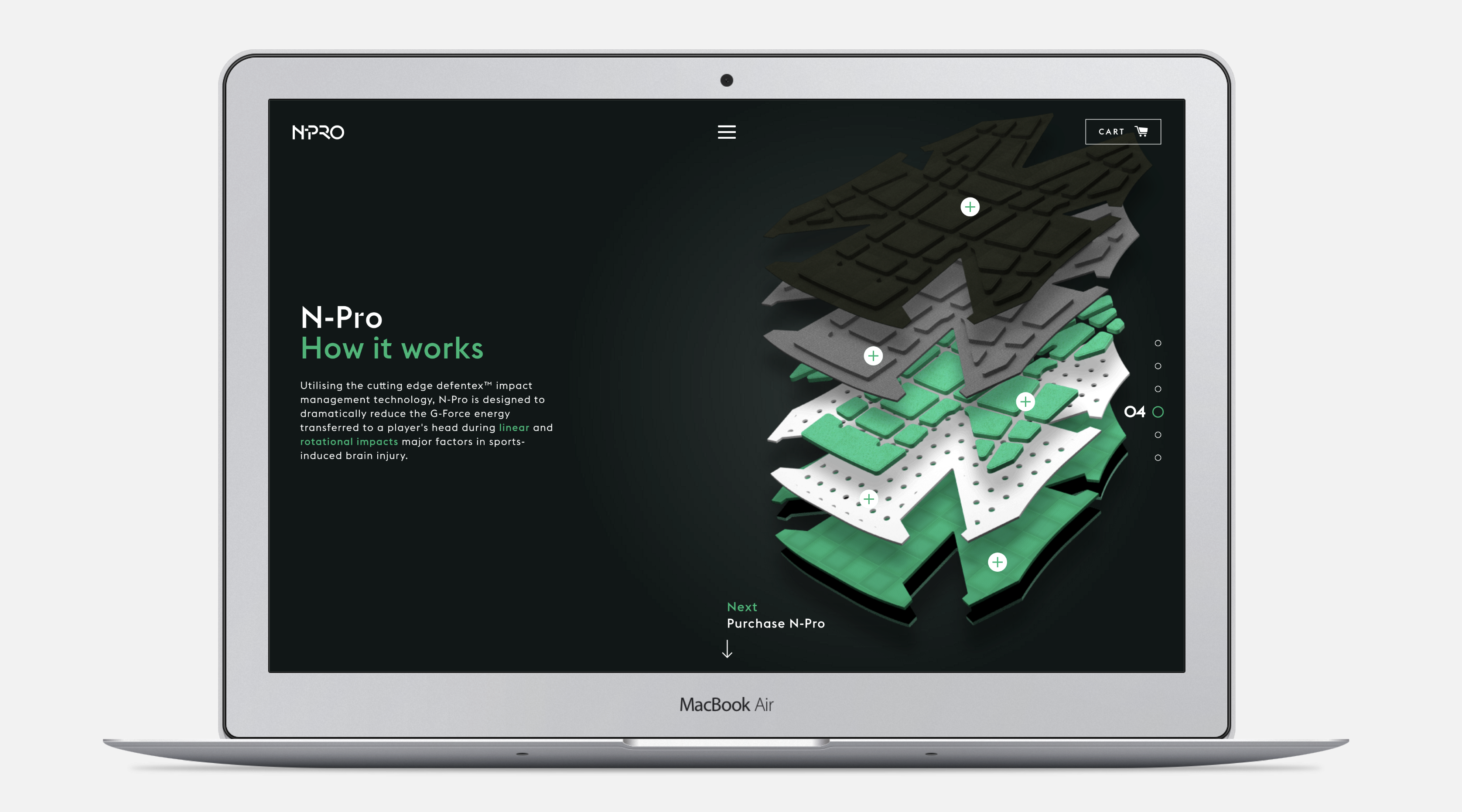Based on the rigorously proven neurological protection the product provides, we developed the brand, N-Pro. The product name and logo design made by Dynamo is visually striking, contemporary and professional; the tone of voice is unapologetic and direct. From there they built a rich brand world that illustrates the technology and product benefits in a truly aspirational way.