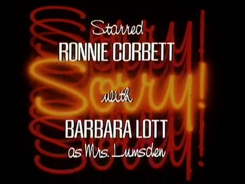 Sorry! (1981–82, 85–88) was a BBC comedy starring Ronnie Corbett as a 41-year-old man unable to leave home because of his domineering mother. The titles were designed by Liz Friedman in an electronic effects laden style common at the BBC in the 1970s and early 1980s.