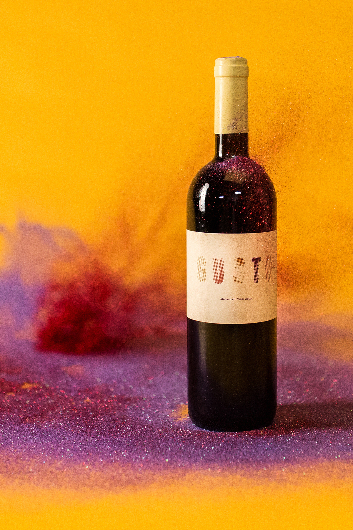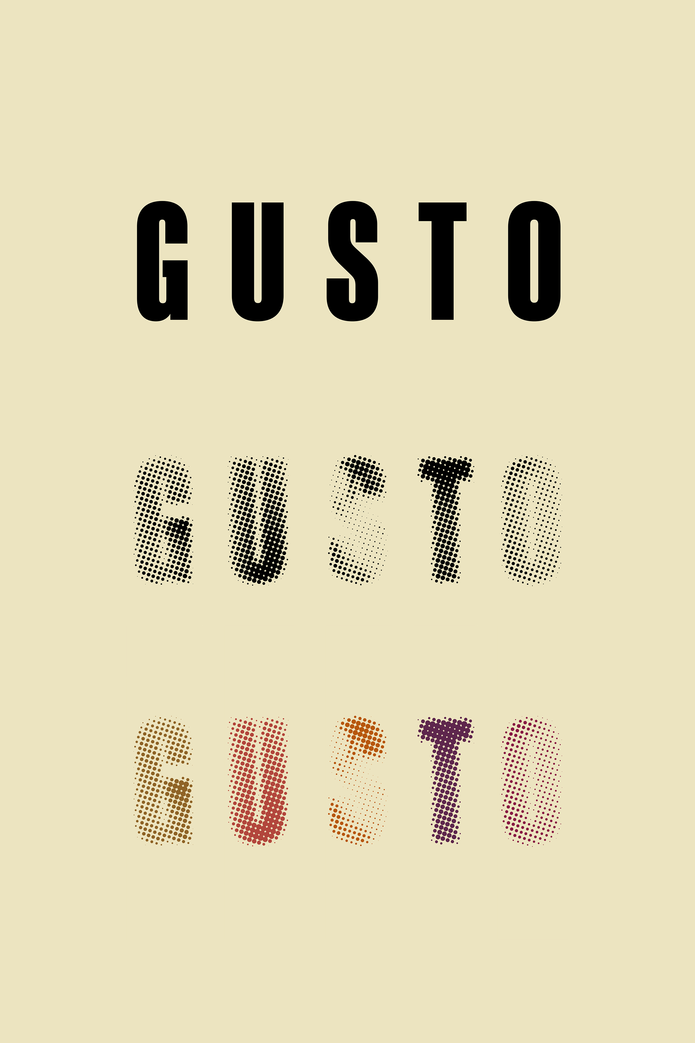 Gusto is a wine of nuances and intensity; an explosion of flavour that awakens the taste buds. Hidden in between the halftone letters, a shameless U that sticks out its tongue.
