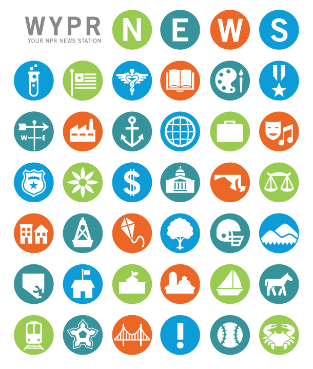 This logo for Maryland Public Radio’s News division is primarily viewed on the WYPR Newsroom website, and takes advantage of its web-based application by incorporating an animated set of icons into the logo itself. The large set of circular icons that animate within the logo relate to topics frequently covered by WYPR.