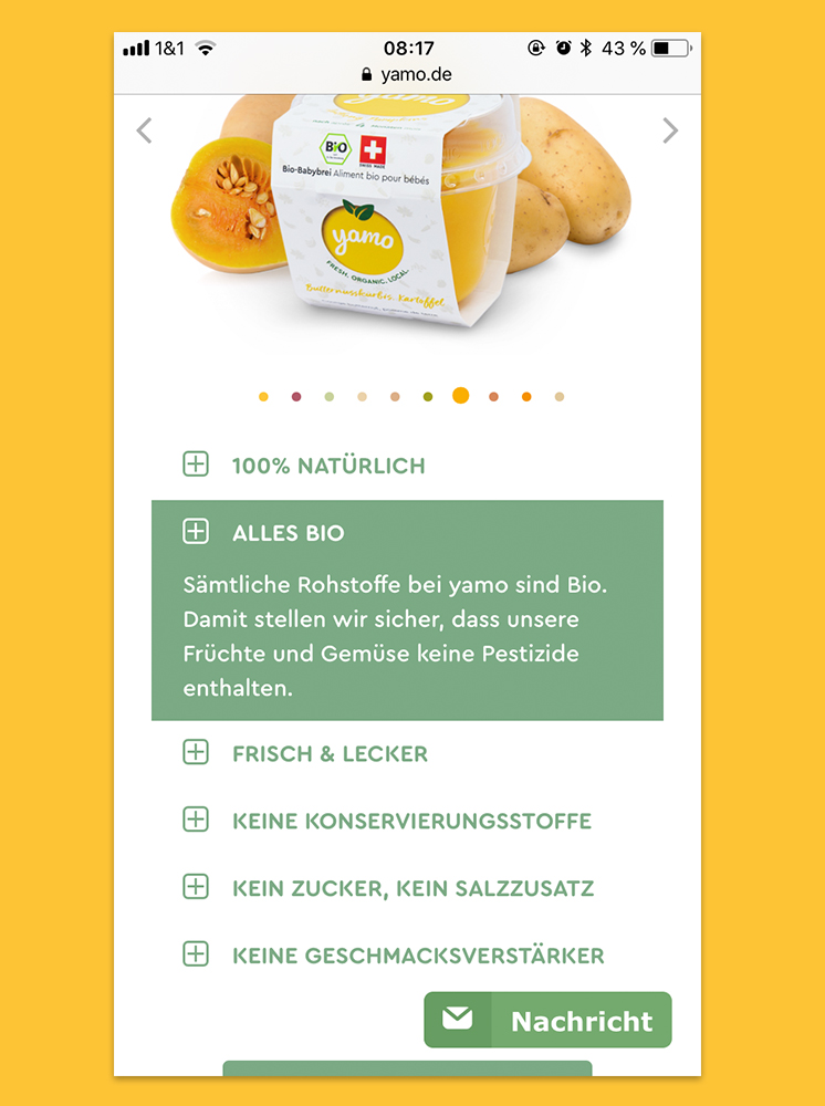 Yamo is a company for organic baby food, to provide parents with fresh and high-quality food for their kids, without having to cook themselves.
