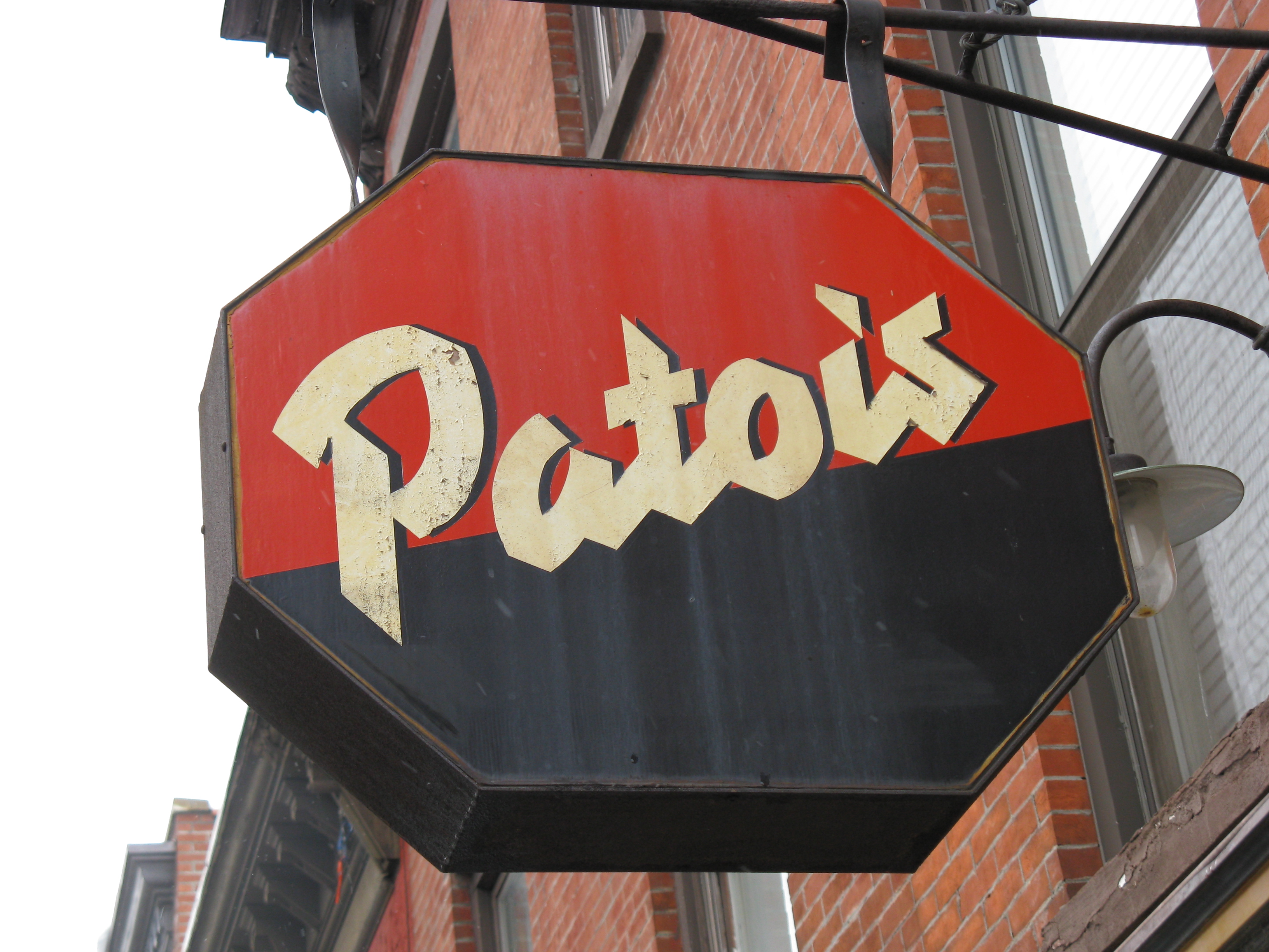 The hanging sign for the Patois was handpainted by New York designer and illustrator Laurie Rosenwald, loosely based on the Loupot typeface that she was working on at that time, and which she completed together with Boston type designer Cyrus Highsmith in 1998. The angular script letterforms are inspired by the St. Raphaël logotype drawn by French designer Charles Loupot in 1938. The final Loupot typeface is a tad lighter and got a conventionally angled t top. It’s available from Occupant Fonts.