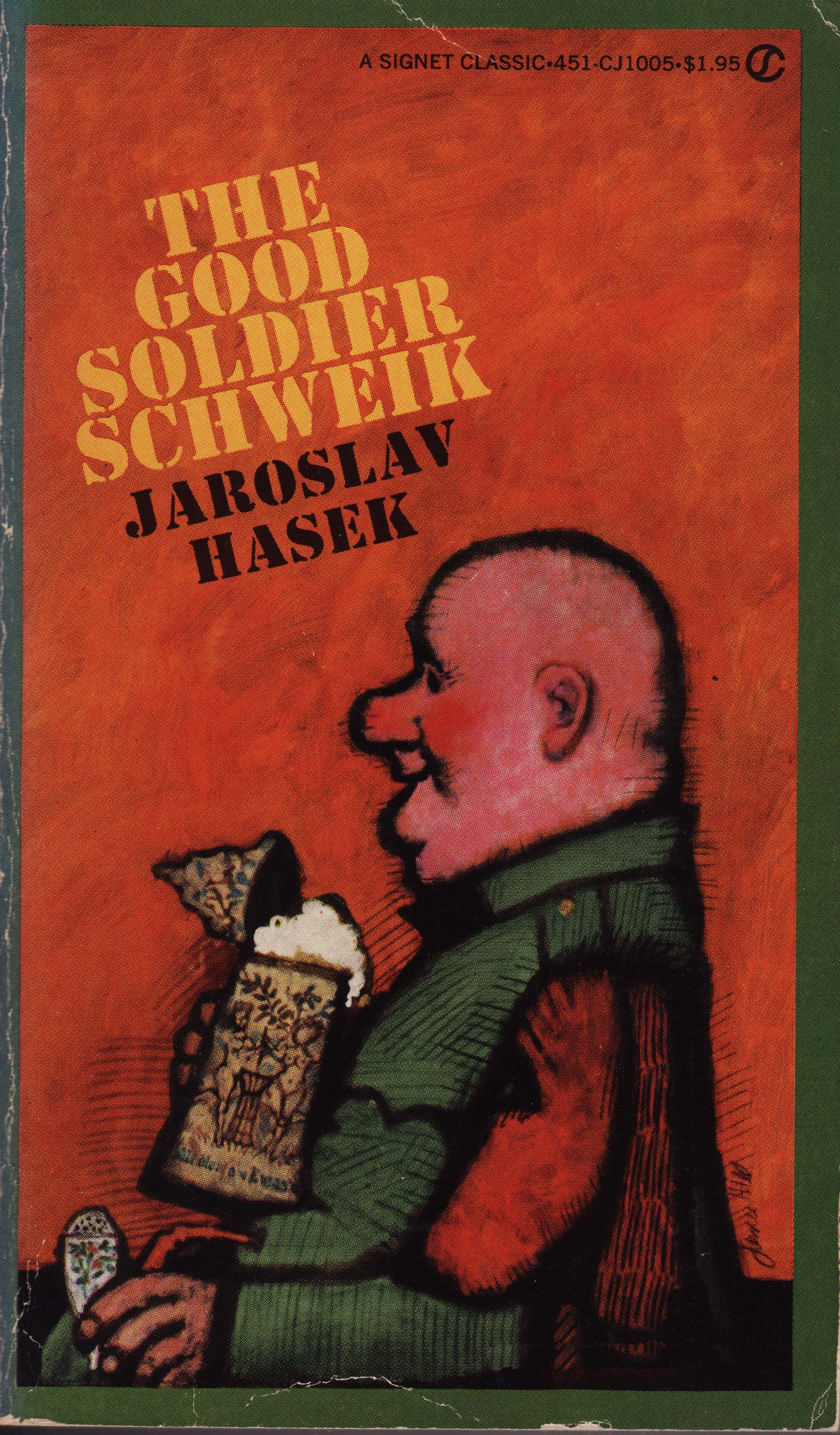 The Good Soldier Schweik – Jaroslav Hašek (Signet) Contributed by Chris Purcell on Dec 1st, 2012. Artwork published in 1963. Photo: Chris Purcell. © The New American Library. License: All Rights Reserved. The cover artwork is signed by James Hill (1930–2004), a prominent Canadian illustrator who did many book covers for Signet Classics. There is no additional design credit for the cover. Typefaces More about Stencil (ATF)Get Stencil (ATF) Formats Books (6658) Topics Literature (3083) Designers/Agencies James Hill (3) Tagged withbook covers (5980)Signet Classics (16)Signet Books (30)Jaroslav Hašek (1)all caps (7791)type on an angle (1360)paperbacks/softcovers (2020)omitted diacritics (13) Artwork location United States (10064) New York City (2977) In Setsgraff (Kayla Joliat) (28) Post a comment Name Email – will not be published Website Your response Submit Comment More Stencil (ATF) in use Grapefruit by Yoko Ono (Sphere)1971unknownContributed by Florian Hardwig Unterstütze Morgenstern!c. 2019Cristian CosteaContributed by Cristian Costea Mike Warnke – “Hey Doc!” cassette insert1978Patrick PolleiRoger SandersDennis HillContributed by Bryson Stohr Sponsor More in Literature Introducing Shirley Braverman by Hilma Wolitzer, Dell1978unknownPhoto(s) by Make It Old on Flickr. Ambit magazine #247 × Savage Pencil2022Stephen BarrettContributed by Out of the Dark A Very Political Lady by Judy LaMarsh1979unknownPhoto(s) by Make It Old on Flickr. One Plus One by Jojo Moyes, hardback edition2014Roberto de Vicq de CumptichContributed by Chris Purcell More in Books Documents of the Life and Work of Johann Sebastian Bach by Hans-Joachim Schulze (student project)2024Margo EsenkovaContributed by Margo Esenkova JPK NRW. Der Architekt Josef Paul Kleihues in Nordrhein-Westfalen2019JAC-GestaltungJudith Anna RütherContributed by Judith Anna Rüther Staff Pick Cook-In: A Beginner’s Guide to the Fun of Cooking by Kathleen Dunning Fisher1969Loretta TrezzoContributed by Florian Hardwig Staff Pick Cornish Names1968Contributed by Stephen Coles More Fonts In Use Glasgow Garland Galt Talk poster2013Ken Garland & AssociatesAdrian ShaughnessyUnit EditionsContributed by Stephen Coles Staff Pick Müholos – Psychosomnia album art2020Rémy PoncetBrest Brest BrestContributed by Rémy Poncet Staff Pick Open House Roma 20232023MistakerContributed by Riccardo Casinelli Staff Pick Adobe ad in U&lc, 19871987Contributed by Stephen Coles Staff Pick