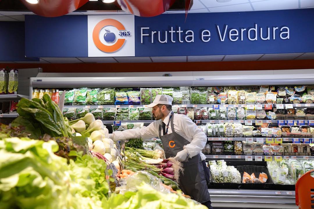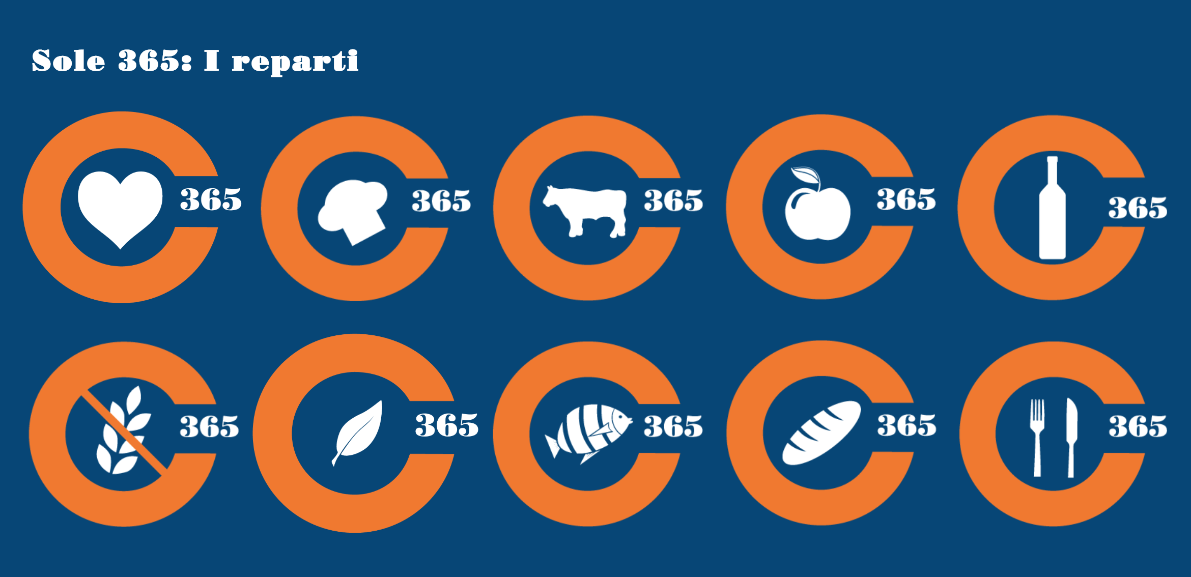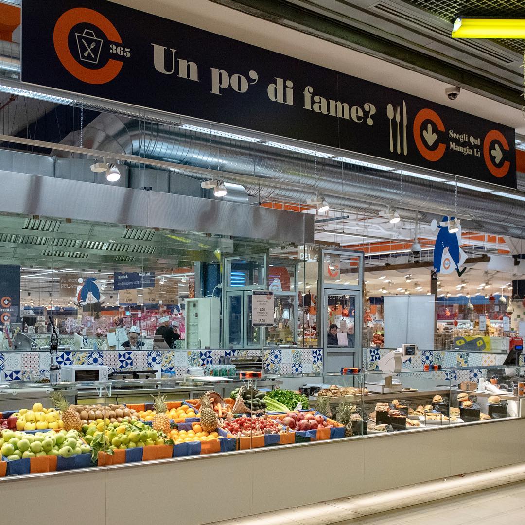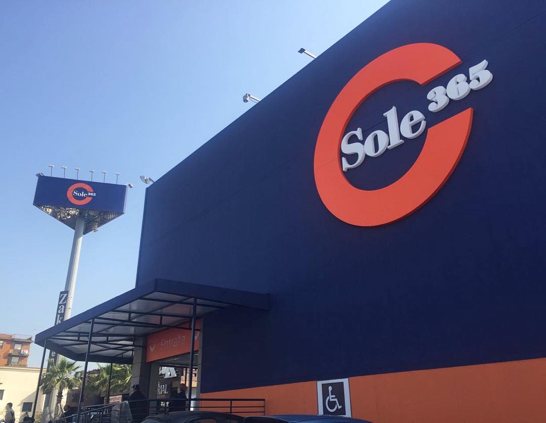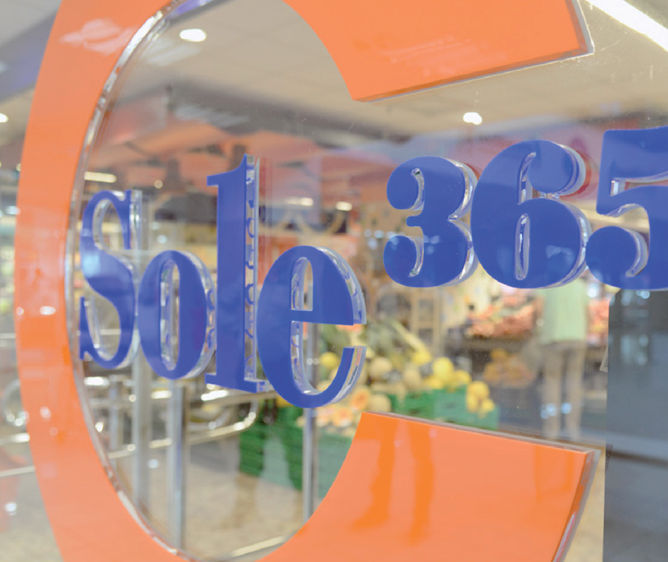Sole365’s brand typefaces present an unusual choice for a supermarket chain. The South Italian company combines (URW) Bauer Bodoni, Poster Bodoni, and T-Star. Poster Bodoni belongs to the Fat Face genre. It appears for “365” in the logo, and is also used for in-store signs, on the website, and in ads.