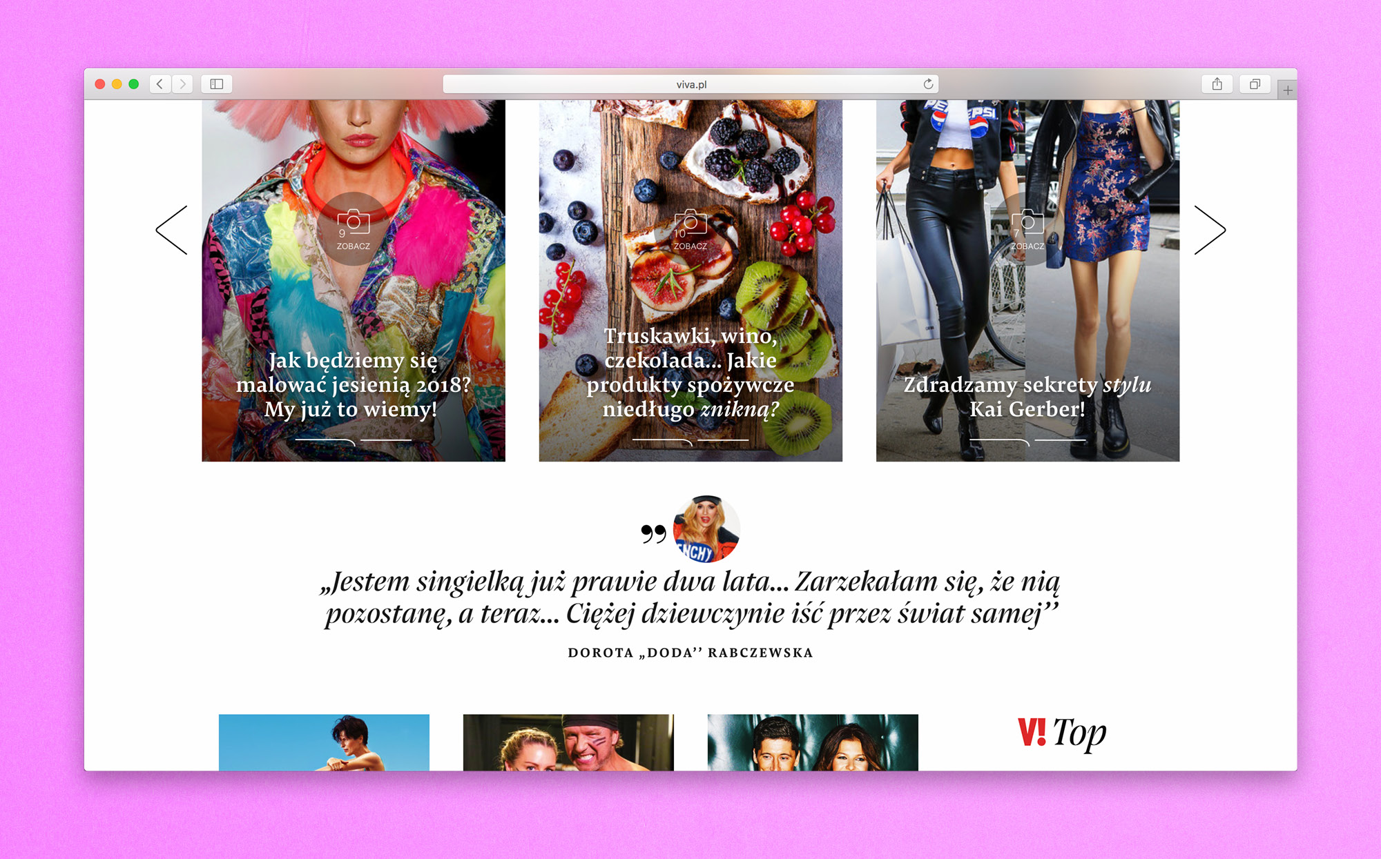 For 20 years, Polish magazine Viva! has been all about lifestyle and trends. Its freshly rebranded online magazine Viva.pl utilises TypeMates’ Pensum Pro, Pensum Display, and Hoftype’s Urania.