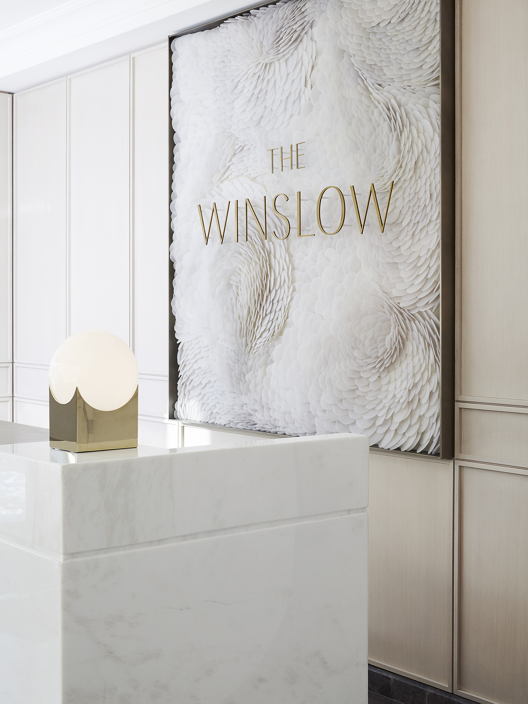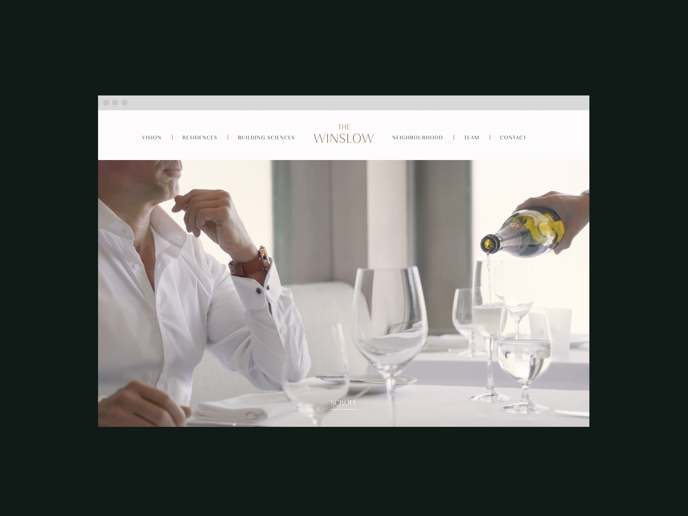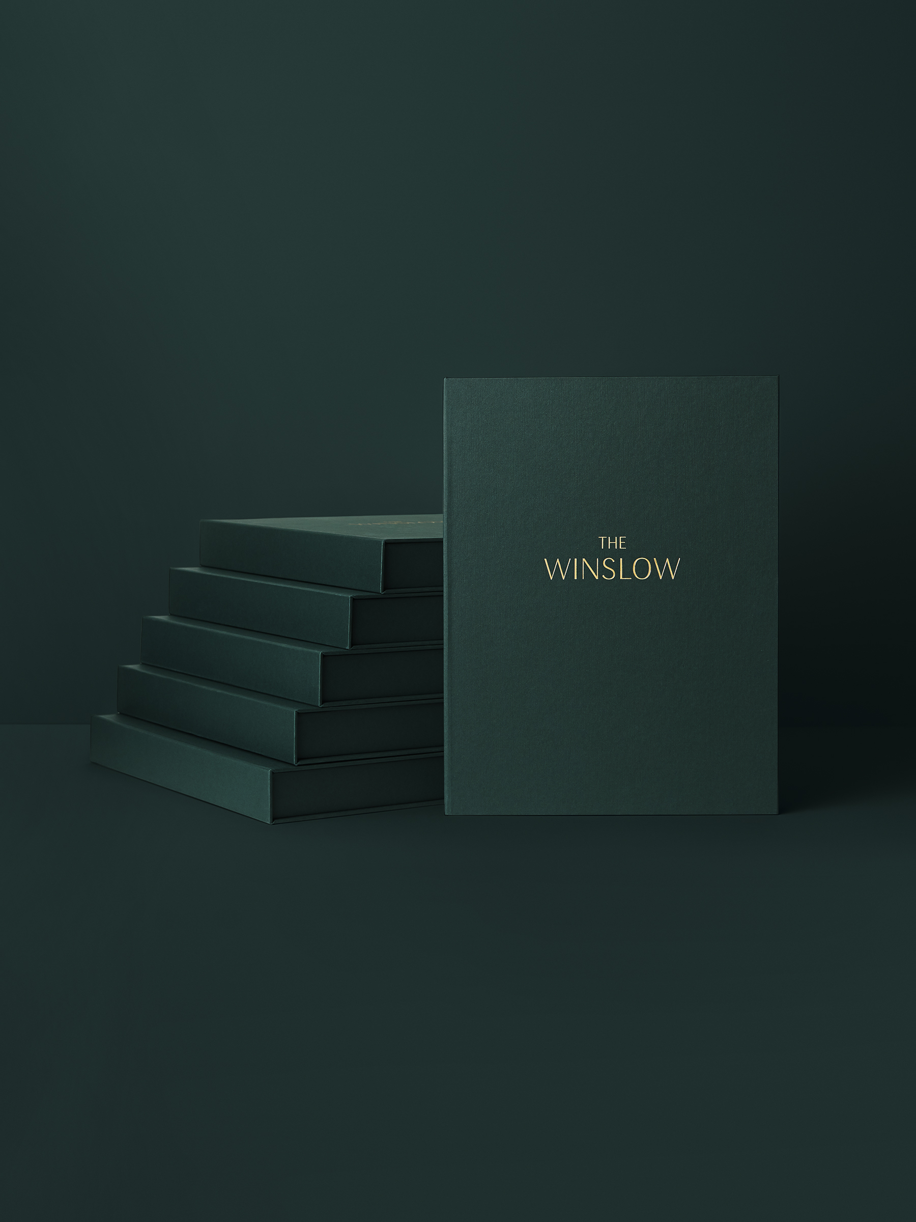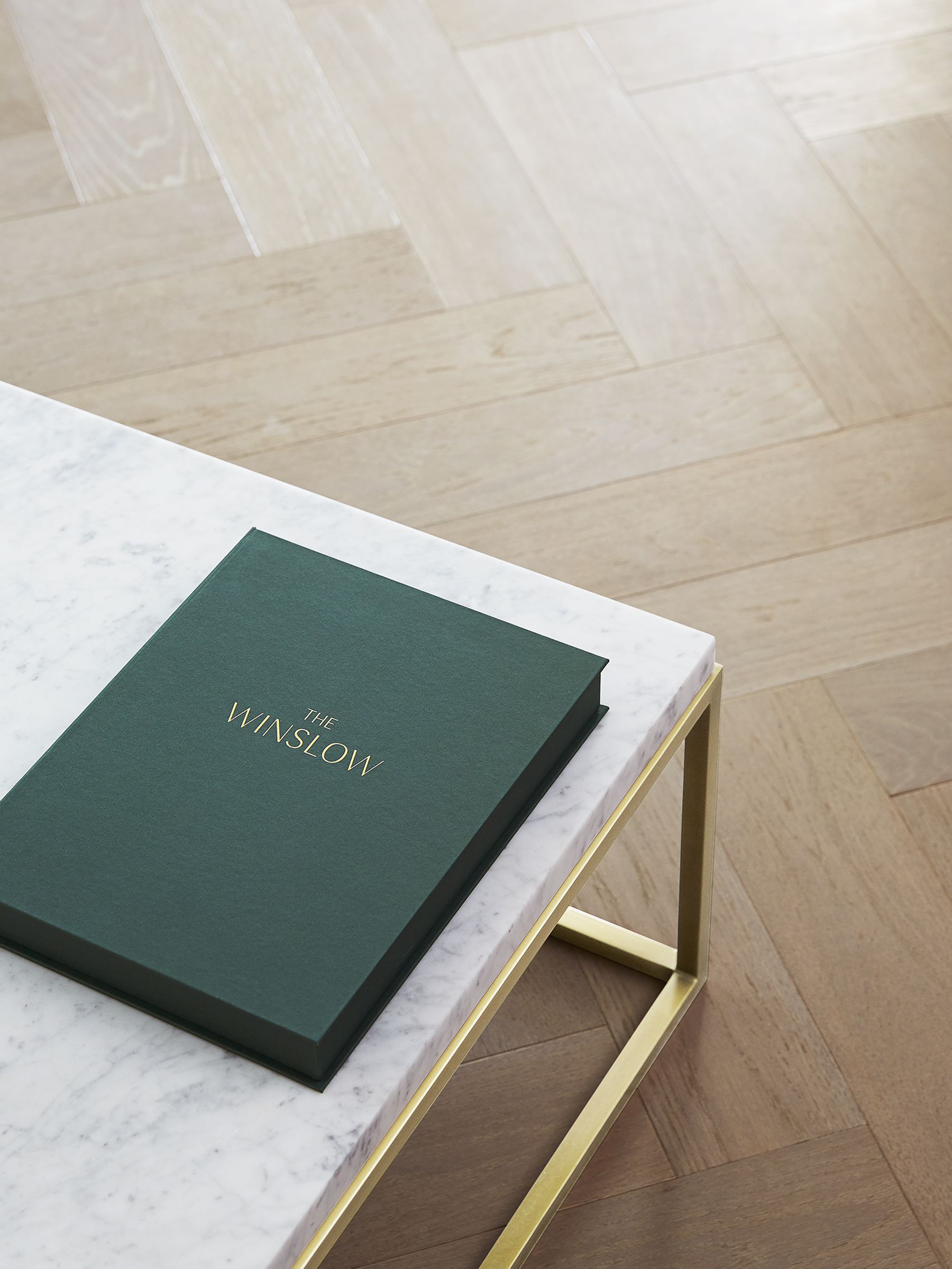 The primary logotype for The Winslow uses Grenale, a classic and polished decorative font with high-contrasting forms. The same typeface is used for headlines in the brochure, paired with Circe for body copy and a few accents using Rift. Pairing this identity with a rich forest green and understated brass for the palette imbued the brand with a vivid, rich, and classic feeling of luxury.