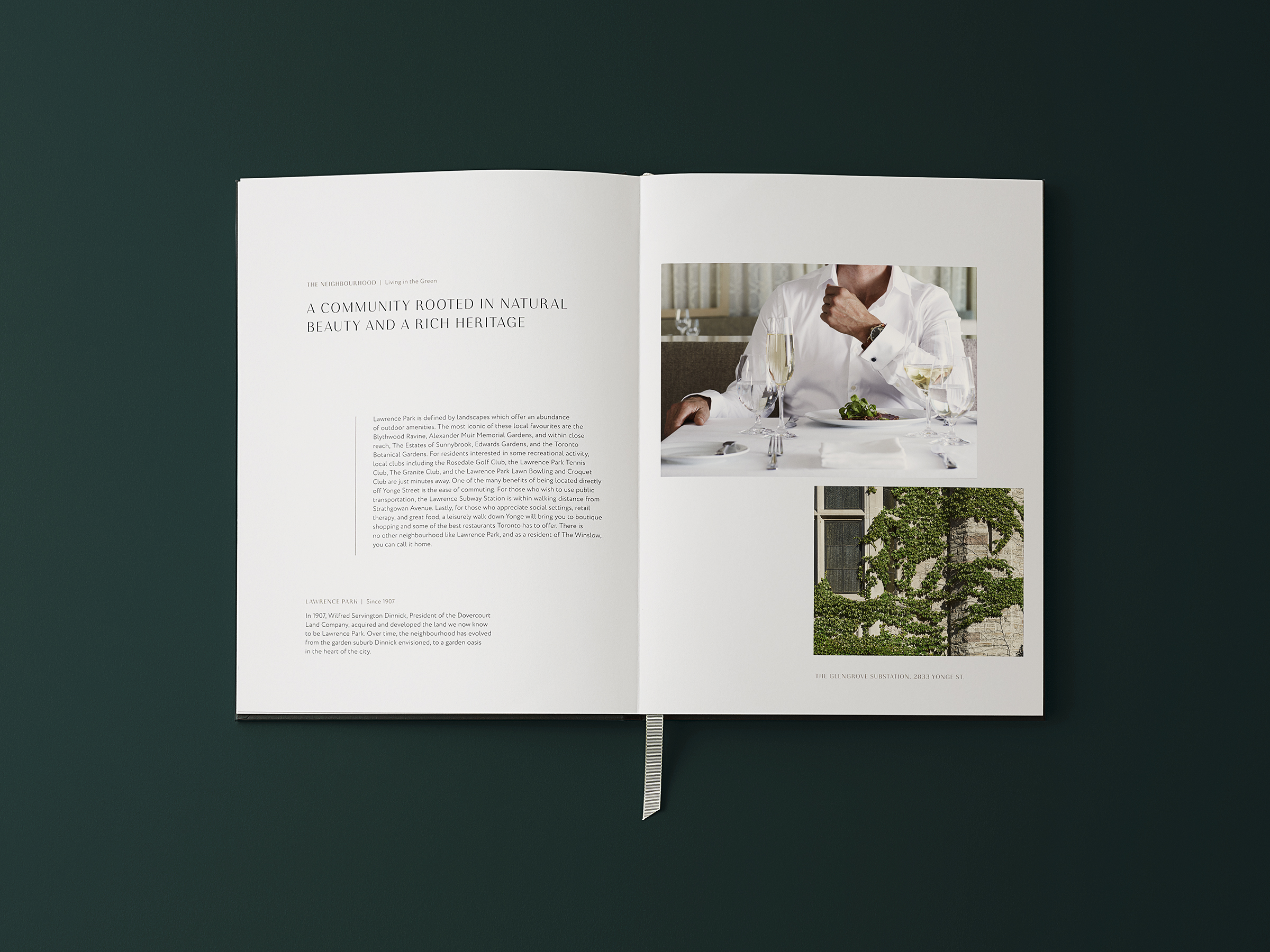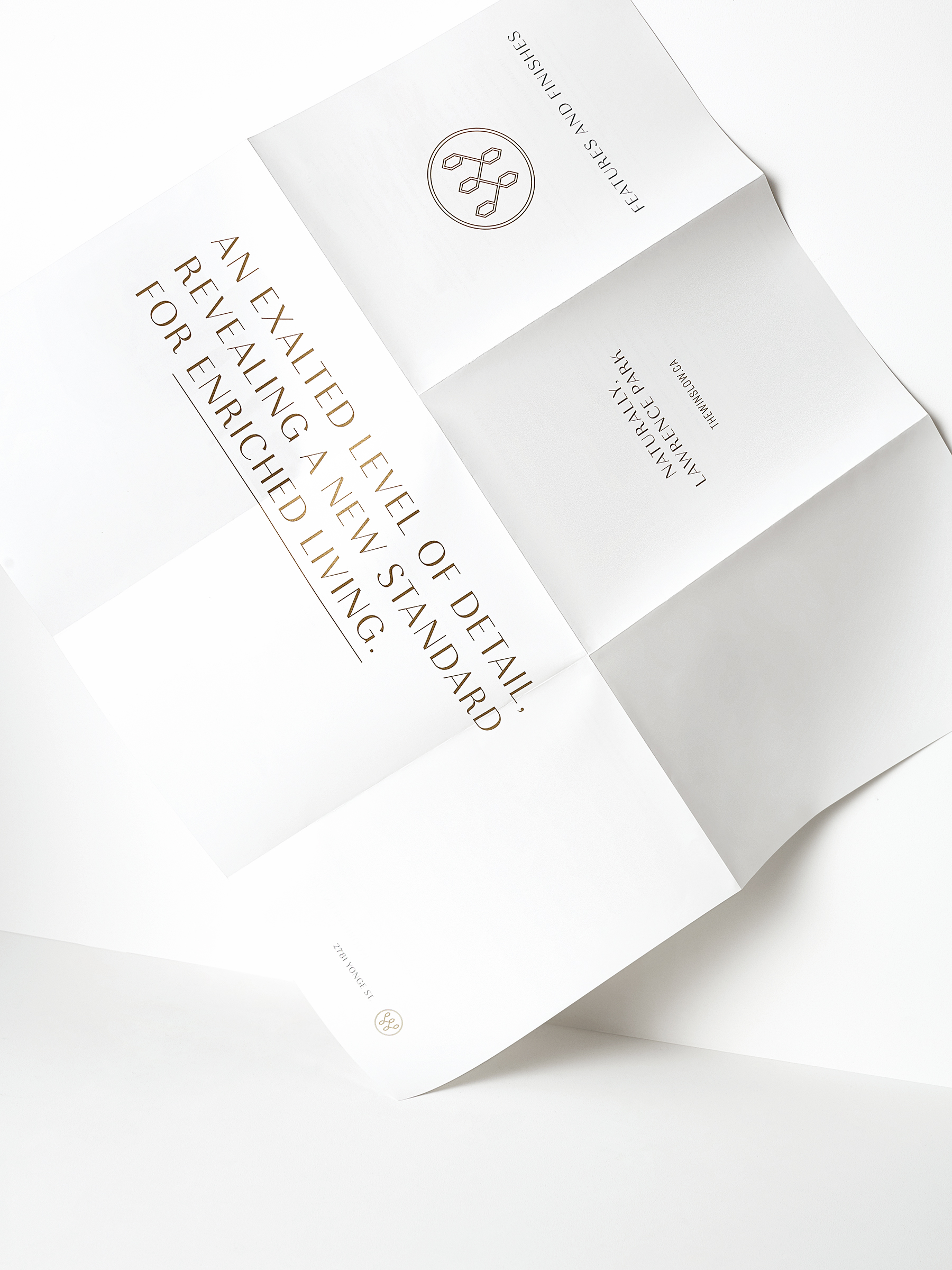 From the earliest stages of the project, the ideas of community and connectivity played a major role in the brand strategy. Lawrence Park is a well-established and affluent community that values the qualities of time and a life well lived — all of which are conveyed through the brand identity.