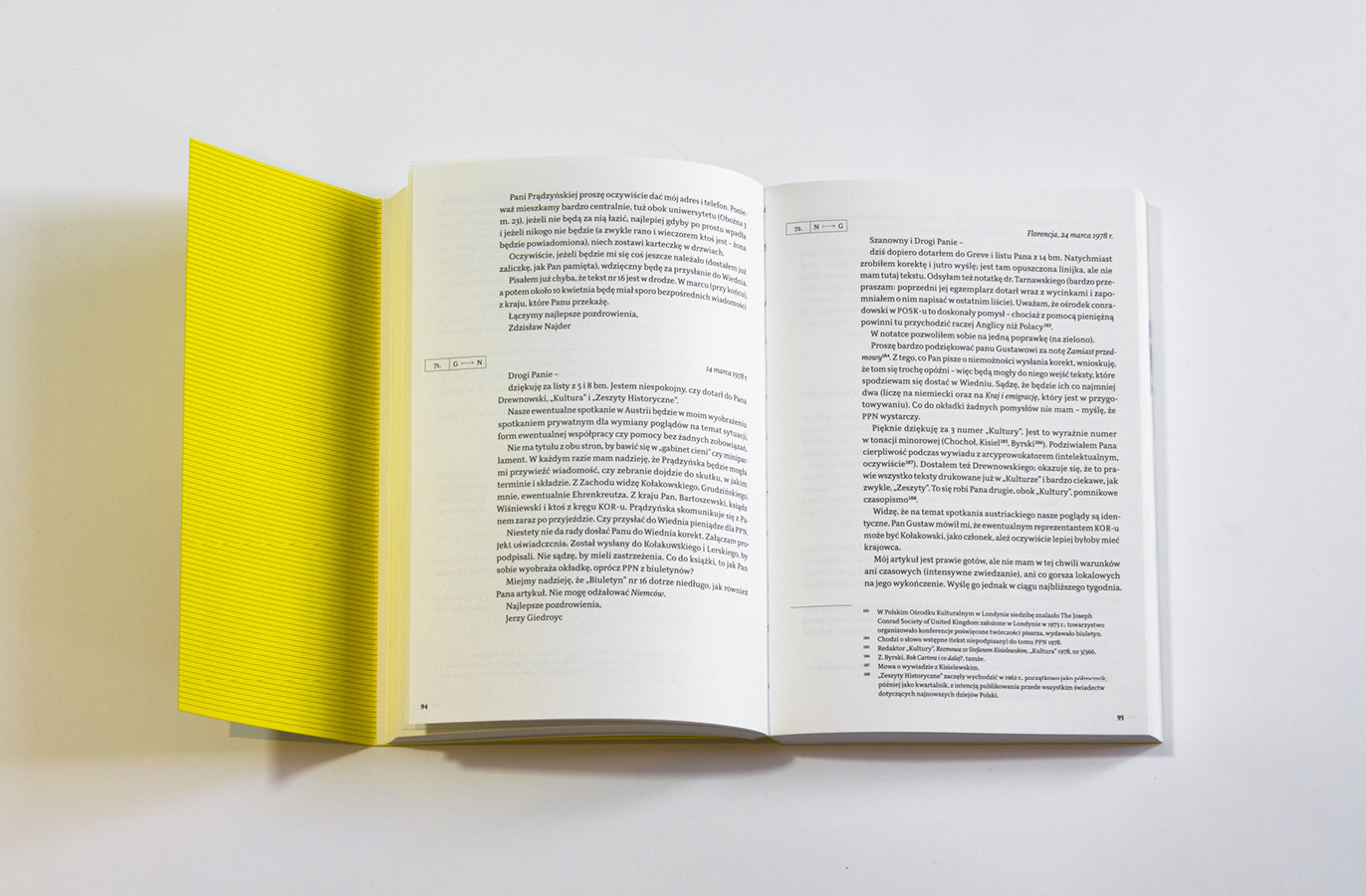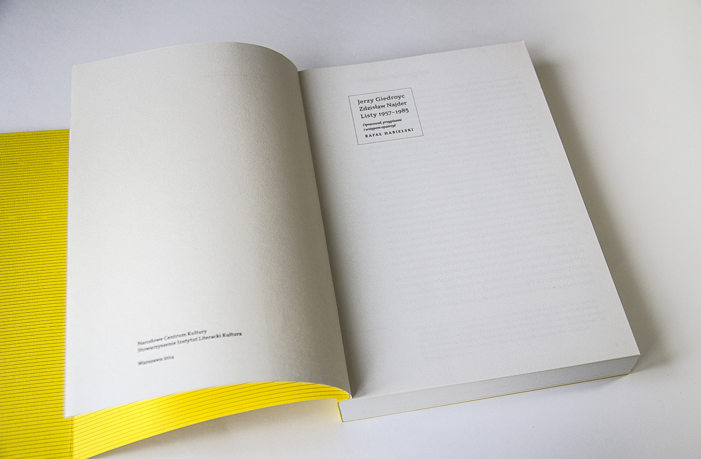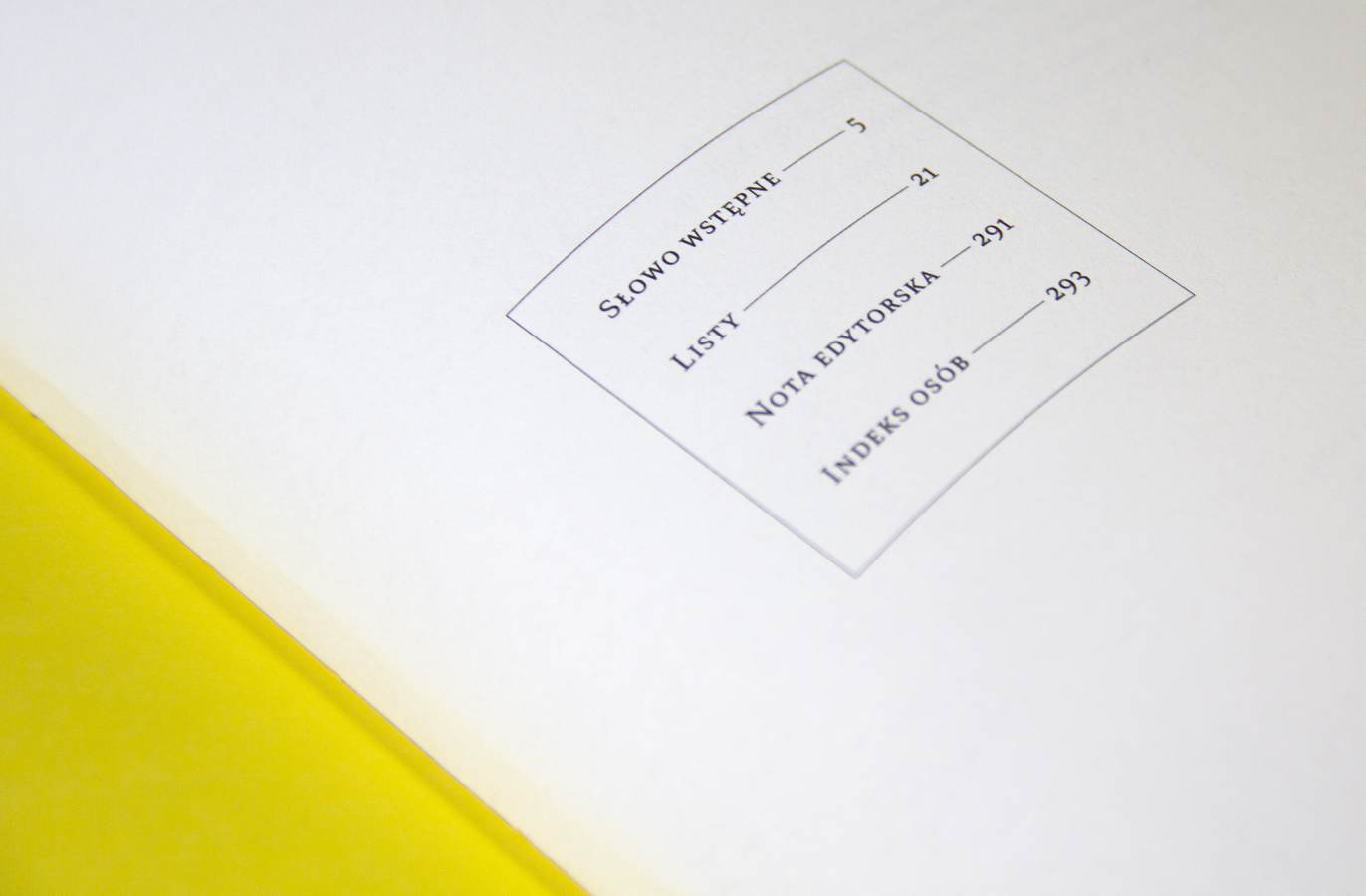 “Listy” means “letters” and refers to the long-term correspondence of Polish writers and activists Jerzy Giedroyc and Zdzisław Najder. The design of the book reflects how the relationship between the two men changed over time. Initally intense, it cooled down and then became conflicting. A characteristic motif of the layout of both the cover and the inserts is broken typography. The title of the cover is partly hidden. Navigating the letters is facilitated by numbering and marking them with the initials of the sender and recipient. The only decorative element, including a fairly minimalist design, is the repeating motif of delicate lines and rectangular boxes with letters of letters.