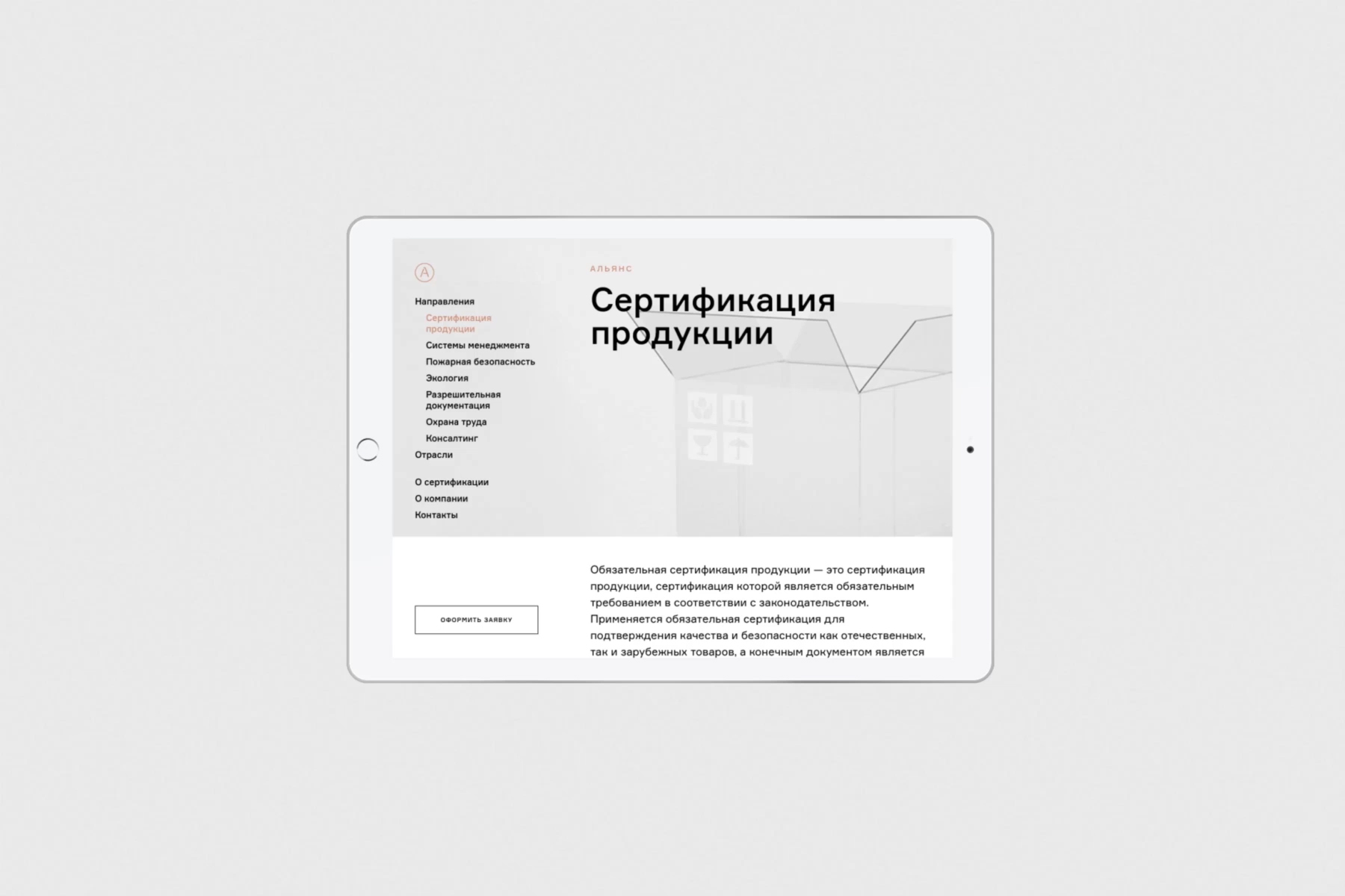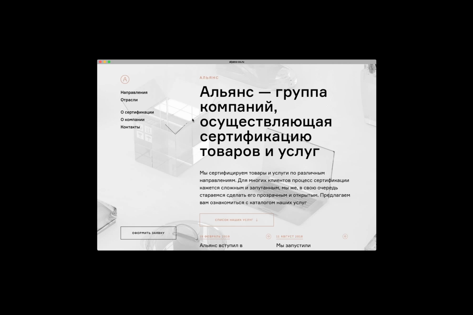 Альянс (Alliance) is a certification company based in Moscow. Certification enables you to demonstrate that the products or services you offer are compliant with the national and international standards. The challenge was to design a new website and stationery for Alliance.