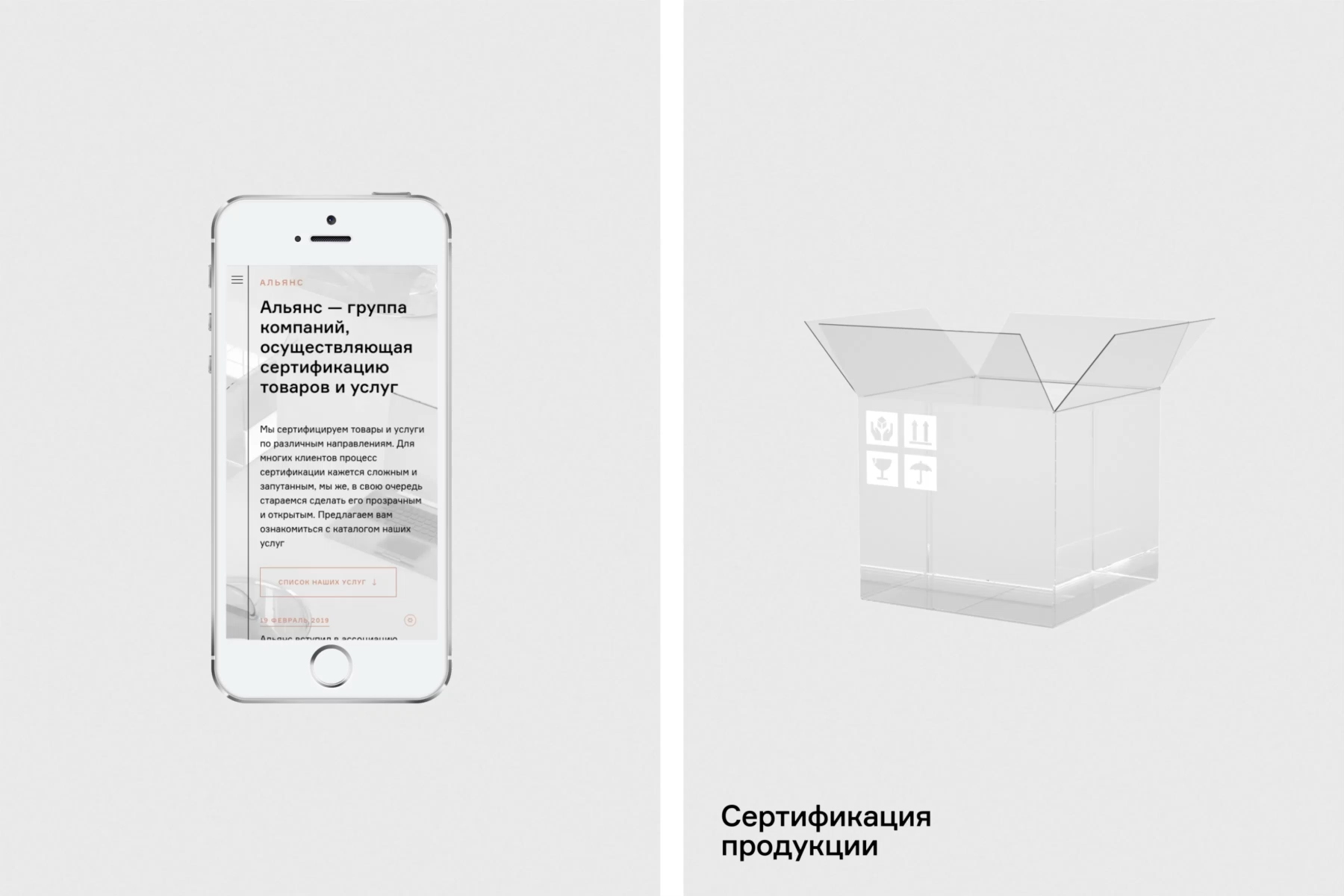 Our idea is based on the principle of transparency. We realized that the certification process seems to be very difficult and frighteningly confusing for most of the customers. We wanted to change this stereotype by showing certification as something very simple and clear. This principle formed our visual language. We visualized each of the certification industries using transparent 3D objects. We designed a monochrome website, leaving the corporate gold color only in accents, using few text styles, making typography as simple as possible, thus focusing the client’s attention on the main thing — company’s key services. The website layout reminds of the certification document exemplary.