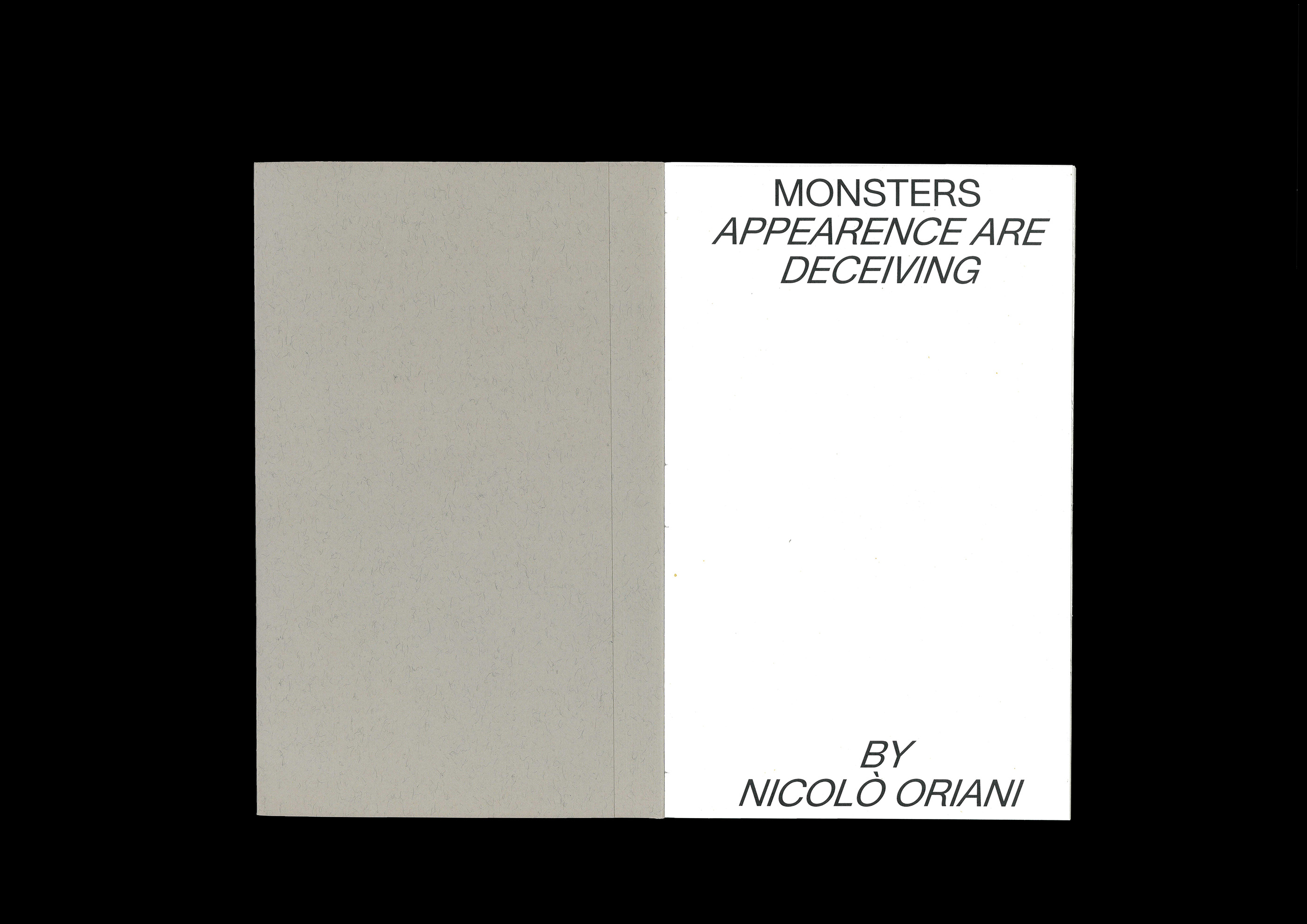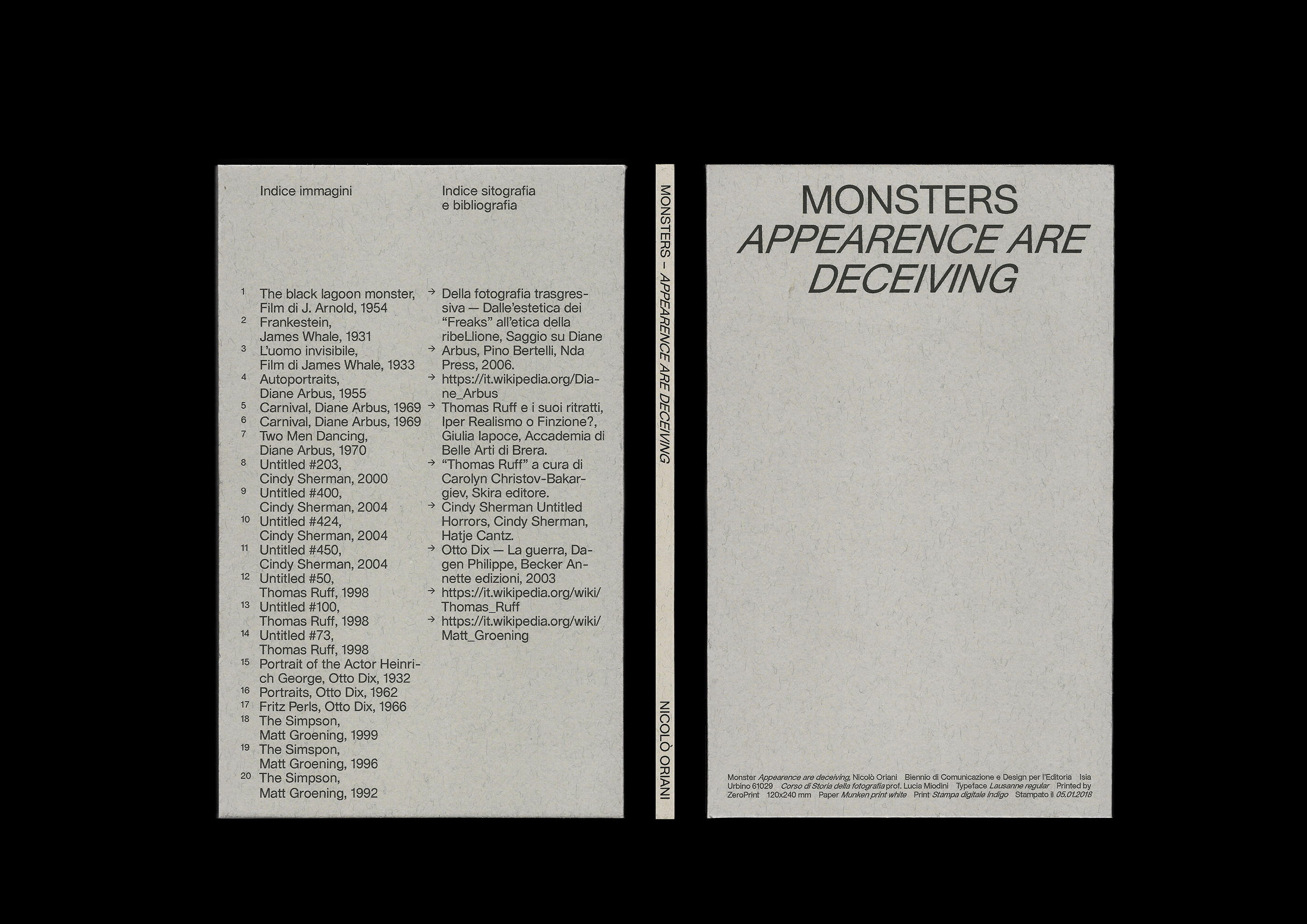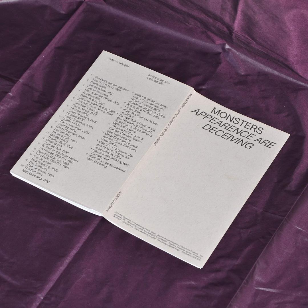 Monsters. Appearence are deceiving Contributed by WELTKERN® Typefaces on Mar 30th, 2019. Artwork published in October 2018. Source: www.behance.net Nicoló Oriani. License: All Rights Reserved. This essay on photography and illustration was made as a student project in the MA program in Communication and Design for Publishing at ISIA Urbino. Book design by Nicoló Oriani, using Lausanne (old version) by Nizar Kazan. Source: www.behance.net Nicoló Oriani. License: All Rights Reserved. Source: www.behance.net Nicoló Oriani. License: All Rights Reserved. Source: www.behance.net Nicoló Oriani. License: All Rights Reserved. Source: www.behance.net Nicoló Oriani. License: All Rights Reserved. Source: www.behance.net Nicoló Oriani. License: All Rights Reserved. Typefaces More about TWK LausanneGet TWK Lausanne Formats Books (6522) Topics Graphic Design (3008) Education/Academia (2181) Designers/Agencies Nicoló Oriani (1) Tagged witheditorial design (607)ISIA Urbino (43)book covers (5860)book interiors (3662)book spines (1610)tables of contents (1145)back covers (2261)one typeface family (1678)title pages (1039)photography (970)Diane Arbus (1)Thomas Ruff (2)Italian (language) (598)small margins (164)student works (762) Artwork location Italy (971) Faenza (4) In SetsLayer (miguel anønimo) (306)Editorial (Valentin Buisard) (5)GDG (뉸 굑) (9)PHANTA (Leonardo de la Fuente) (285) Post a comment Name Email – will not be published Website Your response Submit Comment More TWK Lausanne in use In Symbiose / Teayüş Içinde2018Finn ReduhnContributed by WELTKERN® Typefaces Der Welt (m)eine Ordnung geben catalog2020SR (Studio Riebenbauer)Contributed by WELTKERN® Typefaces El caldo no. 0, “La Lengua”c. 2021Radamés VargasDaniel Berkstein GuillemotSociedad Periodística CENTROContributed by Radamés Vargas Sponsor More in Education/Academia PNEU website2022Romain LaurentCédric Rossignol-BrunetSamuel VermeilContributed by Abyme Staff Pick The New Digital School2016Pedro Lima FerreiraContributed by Pedro Ferreira The Abyss. Nantes’s role in the slave trade and colonial slavery, 1707–1830c. 2021Yan StiveMarc ValletContributed by F37® The History of Akbar, Murty Classical Library of India2015Harvard University PressRathna RamanathanAndrea A. StrangerContributed by Anna Giedryś Staff Pick More in Books Uncle Tom’s Children by Richard Wright1965Catherine HopkinsThe EtheredgesContributed by Chris Purcell Ocean by Sue Goyette2013Gaspereau PressAndrew SteevesContributed by Anna Giedryś Tussen de Peel en Grave2015Weijsters & Kooij VormgeversContributed by DJF Weijsters The Riddle of the Sea by Jonne Kramer2022Karl James MountfordContributed by Eva Silvertant More Fonts In Use Orchestre Symponique Genevois2012KW43Contributed by Stephen Coles Staff Pick The Mozart, Salzburgc. 2019Bruch—Idee&FormContributed by Kurt Glänzer Staff Pick Kraftwerk – Autobahn album art, Vertigo1974unknownContributed by Florian Hardwig Staff Pick Il Sole 24 Ore (2021 redesign)2021Tomo TomoContributed by Luca Pitoni Staff Pick