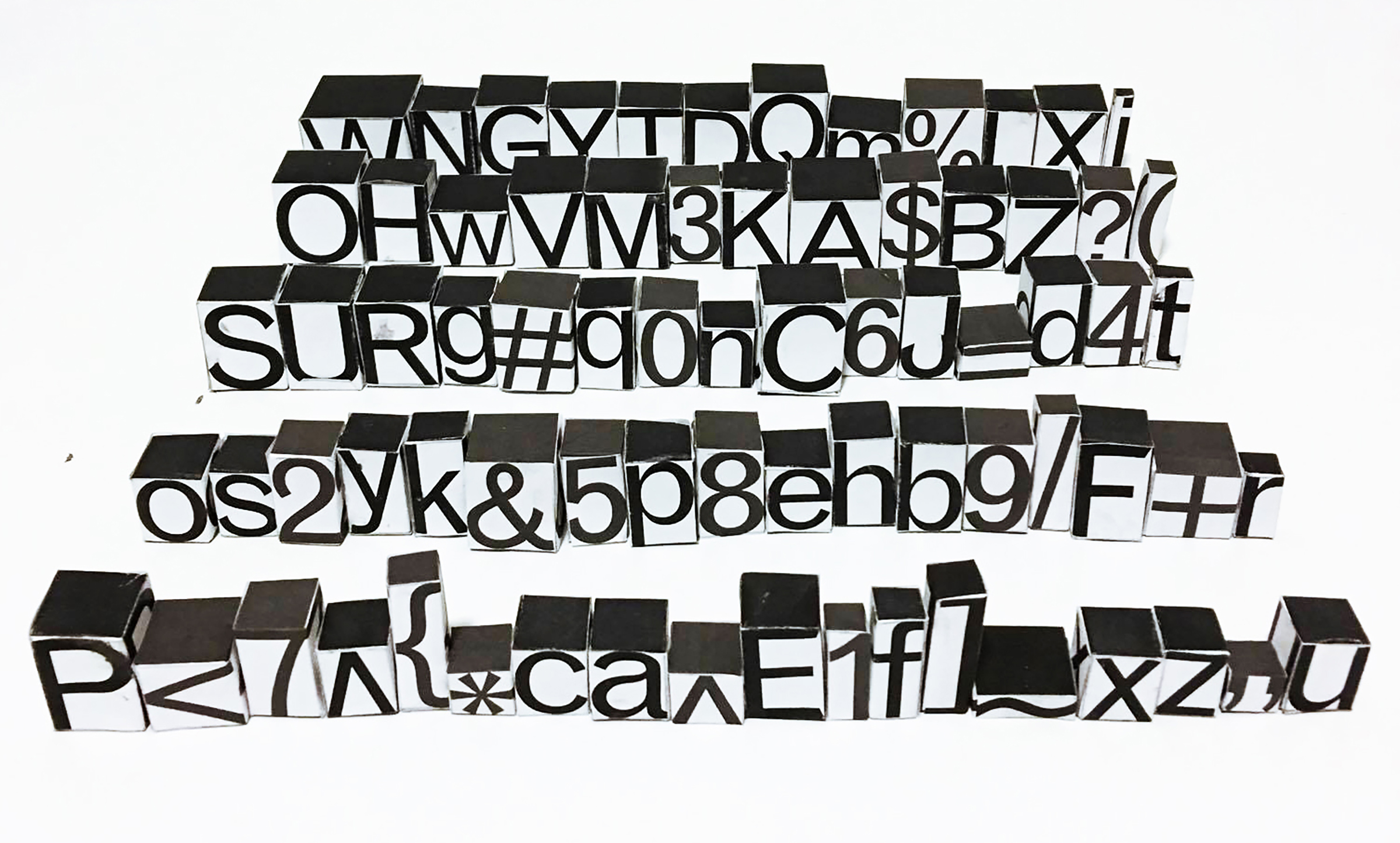These physical boxes themselves can also be used to typeset information. This alternative (physical) consideration of typography from various angles is what makes this typeface an attribute to Marcel Duchamp.