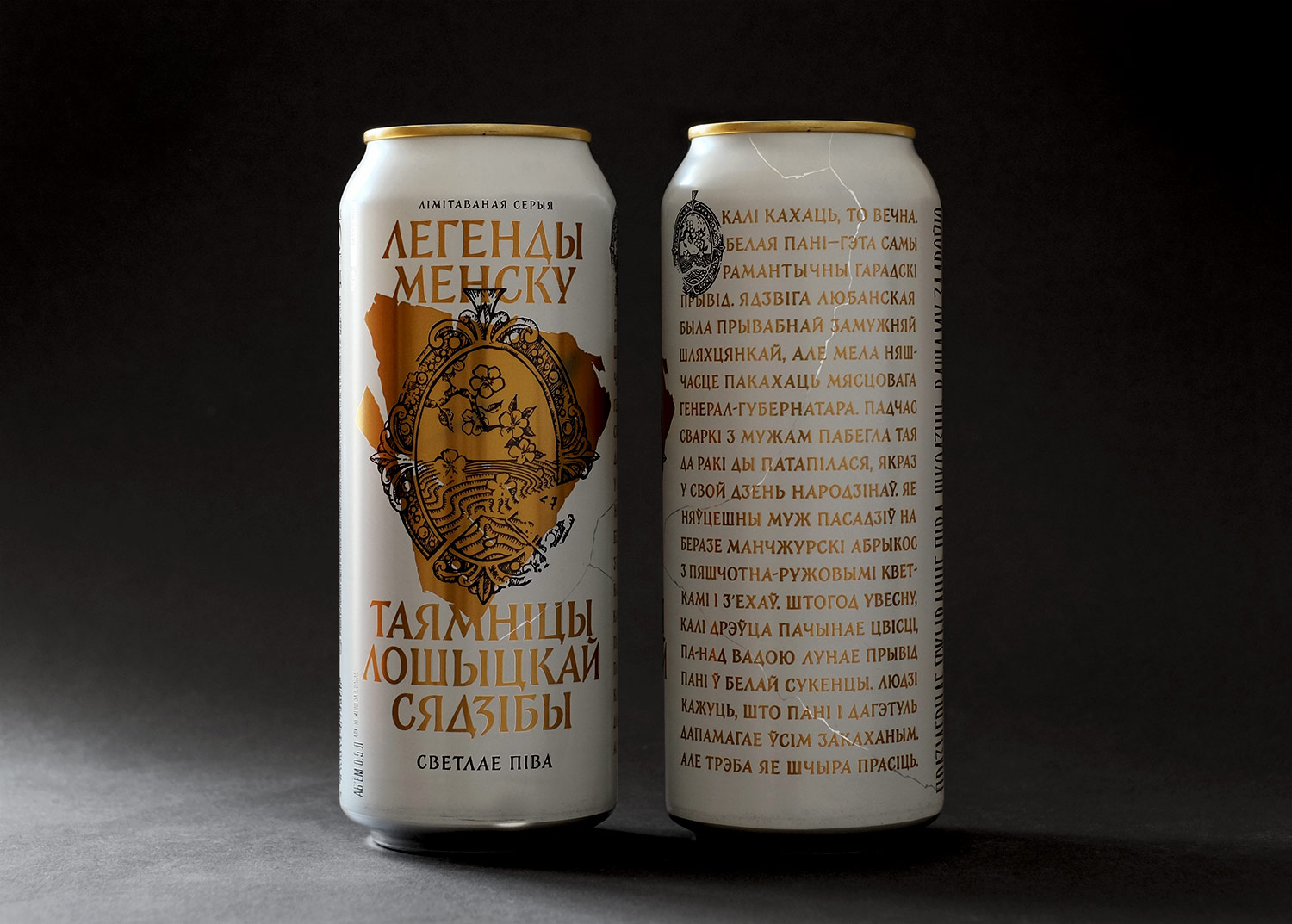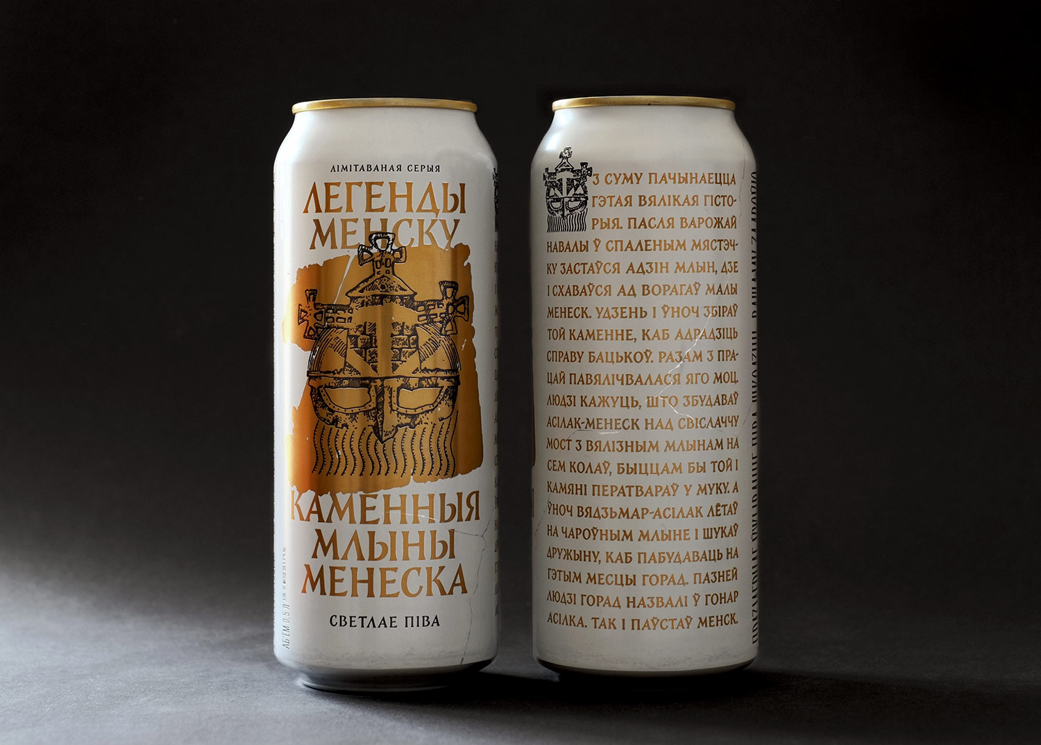 Легенды Менску (“Legends of Minsk”) is a limited edition series of three beers from the Krynitsa brewery. The new design coincided with the 950th anniversary of Minsk. The client asked to implement the concept of the city’s most famous urban legends, resulting in “Artifacts” as a design concept, which determined the future creative boundaries.