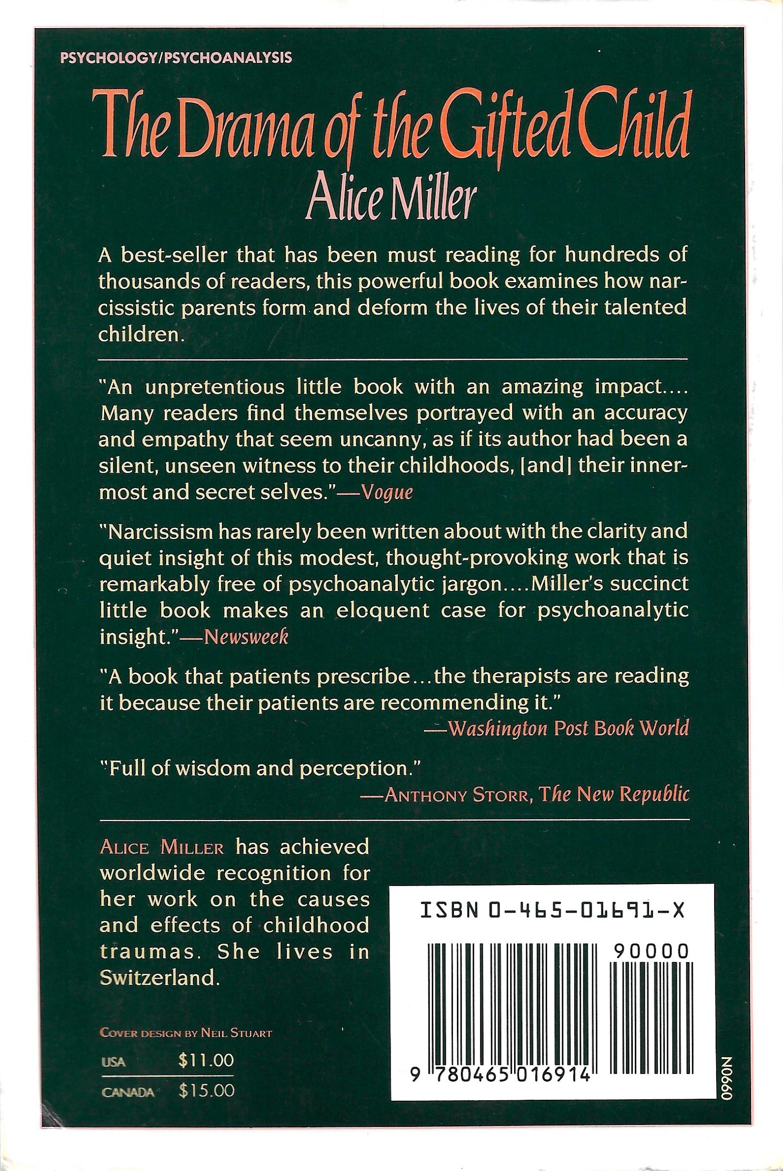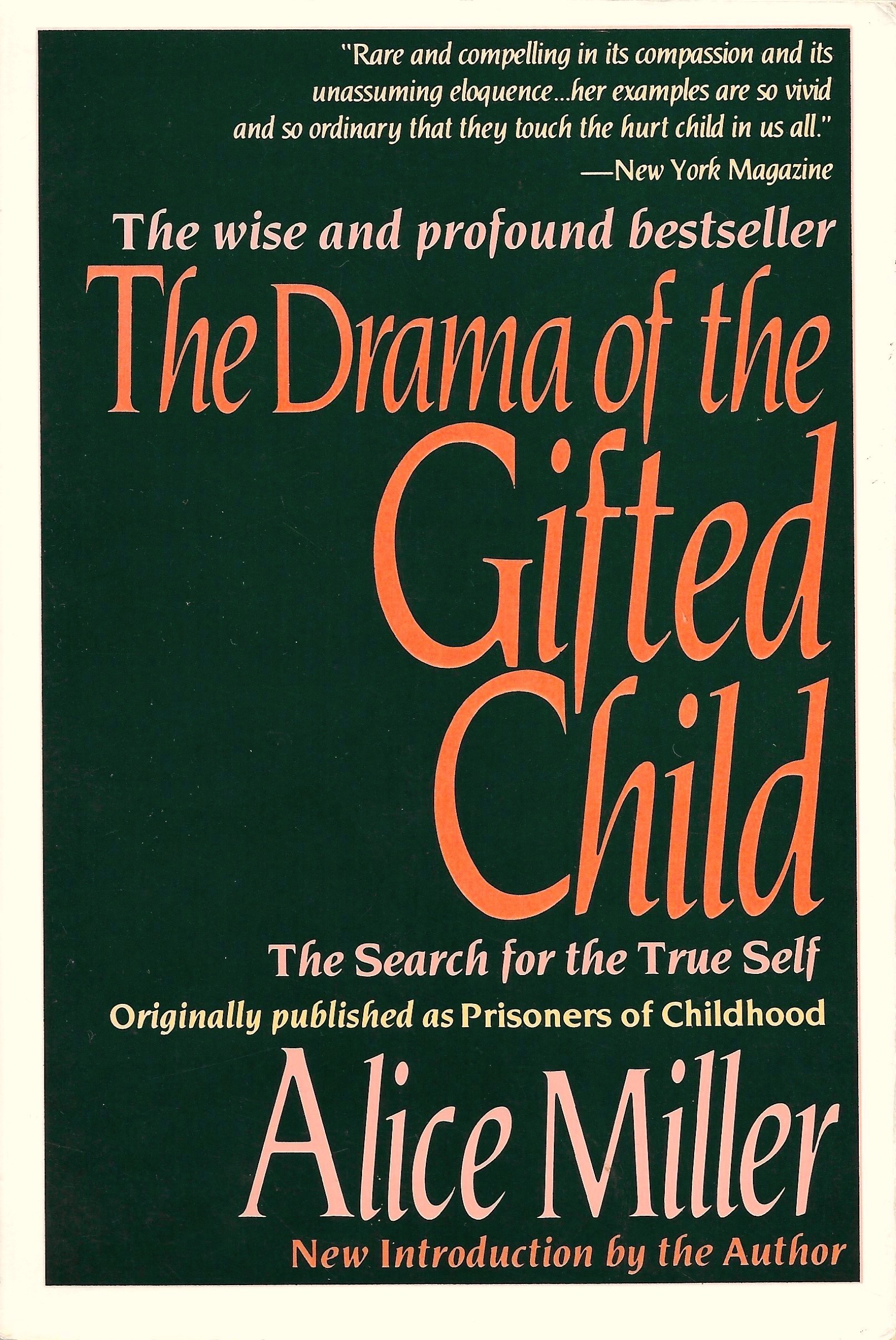 Paperback edition of The Drama of the Gifted Child by Alice Miller, published by Basic Books in 1992. Originally published in German as Das Drama des begabten Kindes in 1979. Basic Books printed their first English translation in 1980.
