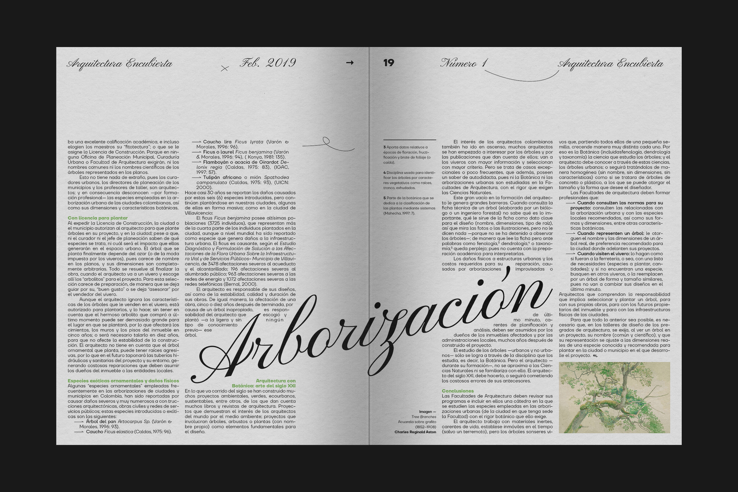 Proposal for the first issue of Arquitectura Encubierta (“Hidden Architecture”), an independent publication that contains a brief selection of texts and articles building a bridge between architecture and vegetation, to be concerned with increased integration in nature nowadays. The project has not been realized.