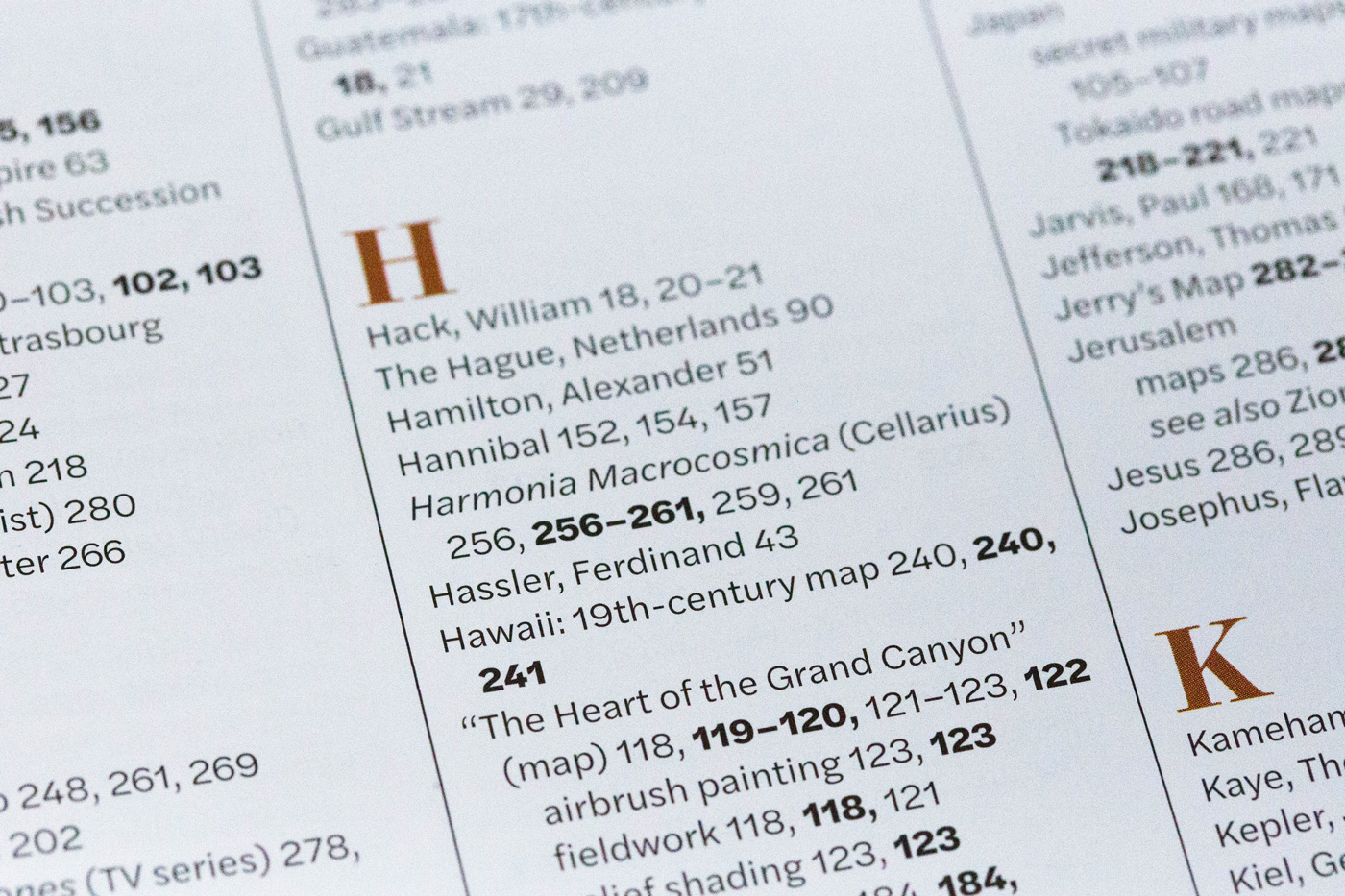 All Over the Map. A Cartographic Odyssey is a demonstration of the potential of typefaces with optical sizes. The book utilizes all three subfamilies of Halyard, each of which was purpose built to perform optimally at its intended size.
