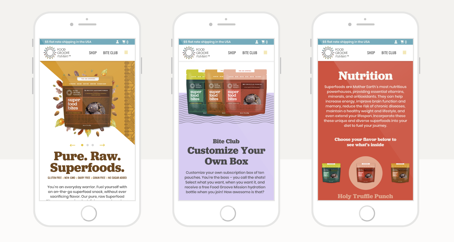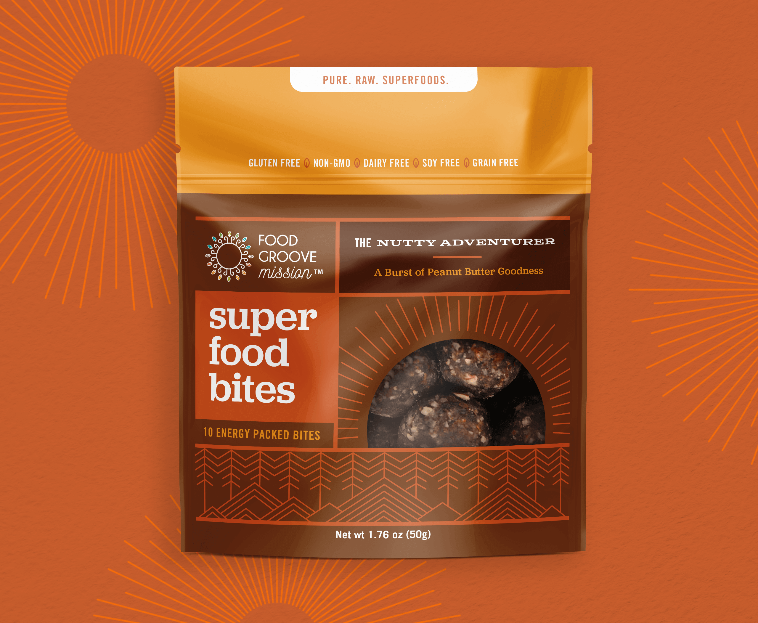 The packaging of Food Groove Mission’s healthy snacks features a range of fonts. Jubilat takes the leading role: Its Semibold is the trustworthy voice chosen for the product line’s name (“Superfood Bites”, in all lowercase). The slab serif with the large x-height and the efficient spacing is also used for providing the flavor information (e.g. “A Pure Spark of Dark Chocolate”).