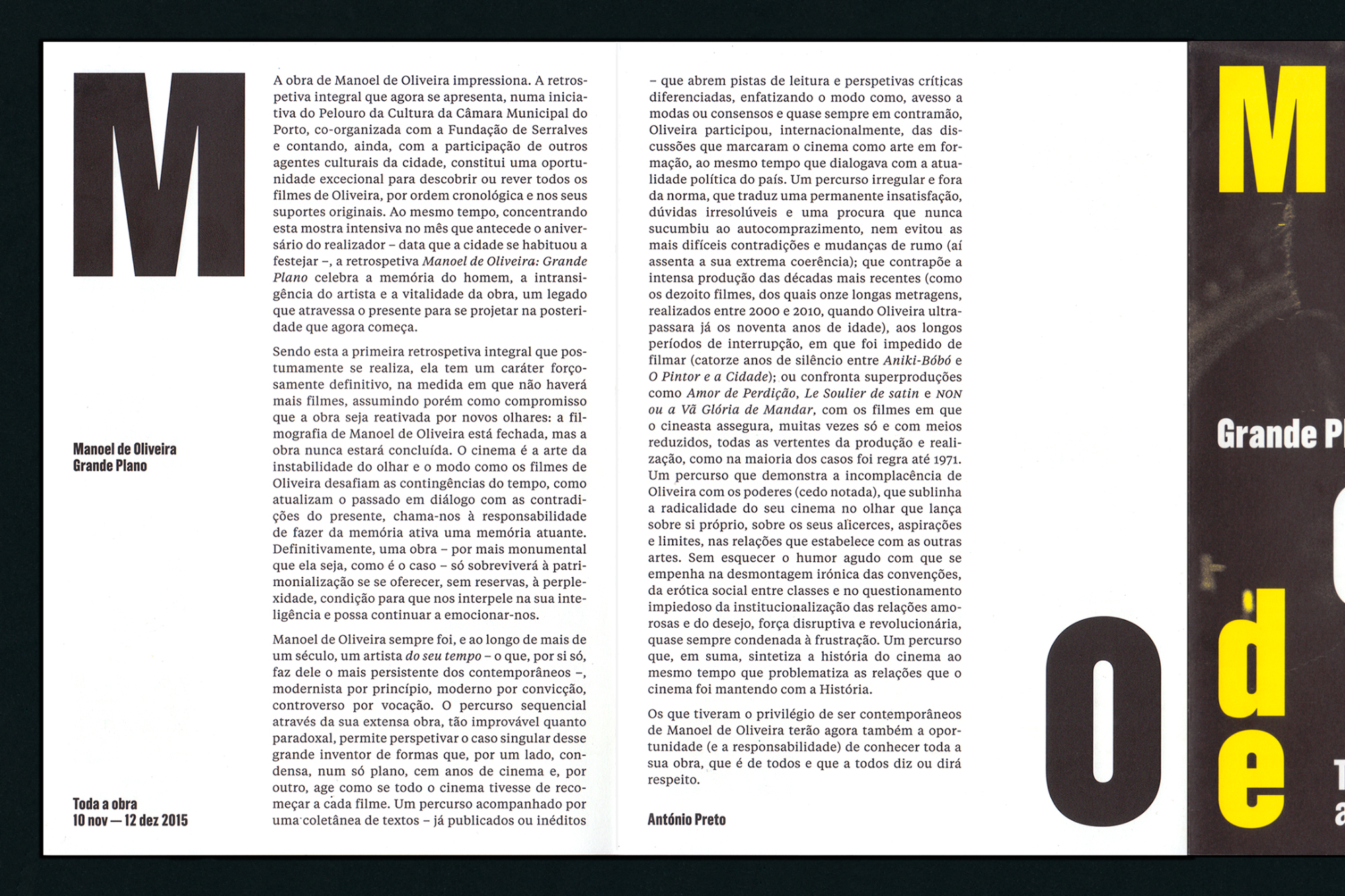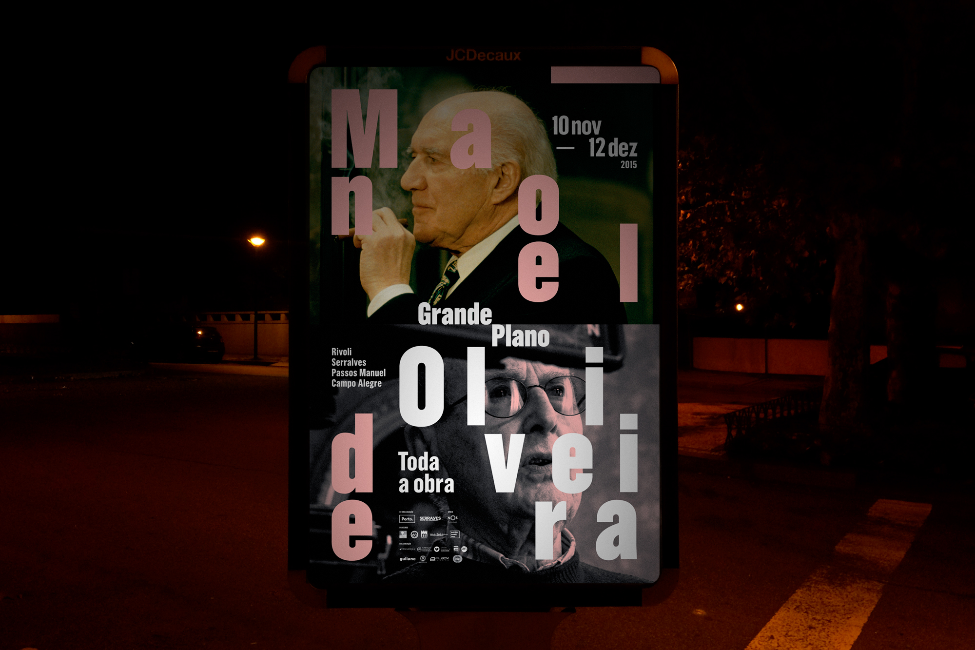 Manoel de Oliveira (1908–2015) was a Portuguese film-maker and screenwriter, with a deep connection with the city of Porto, where he lived and worked. The first retrospective of Manoel de Oliveira’s complete body of work happened there, during November and December of 2015, organised by the Porto City Hall, together with Serralves. During these two months his works were screened at several cinemas, with an overall of 38 sessions, presented by different speakers, who were somehow linked to Oliveira’s work. — And Atelier