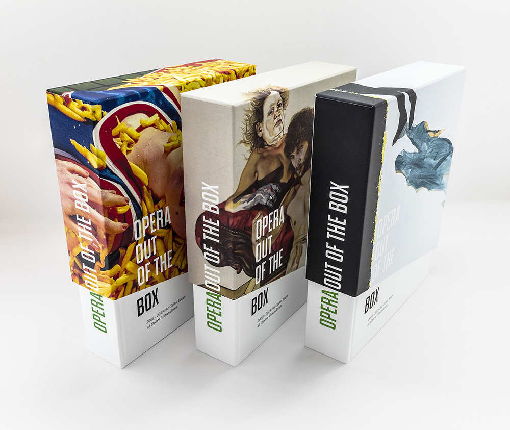This monumental 720-page book is housed in an arty slipcase with three different covers, with pictures by the artists that collaborated with Aviel Cahn on communicating and working around the seasonal themes during the last five years; as such contemporary artists Koen van den Broek, Kati Heck and Maurizio Cattelan (ToiletPaper) found a new gallery space in their collaboration with Opera Vlaanderen. Opera Out of the Box takes the reader on a trip of seventy productions from the last decade. Moving from text to image, the book then turns into a 200-page photo gallery, a true feast for the eye.