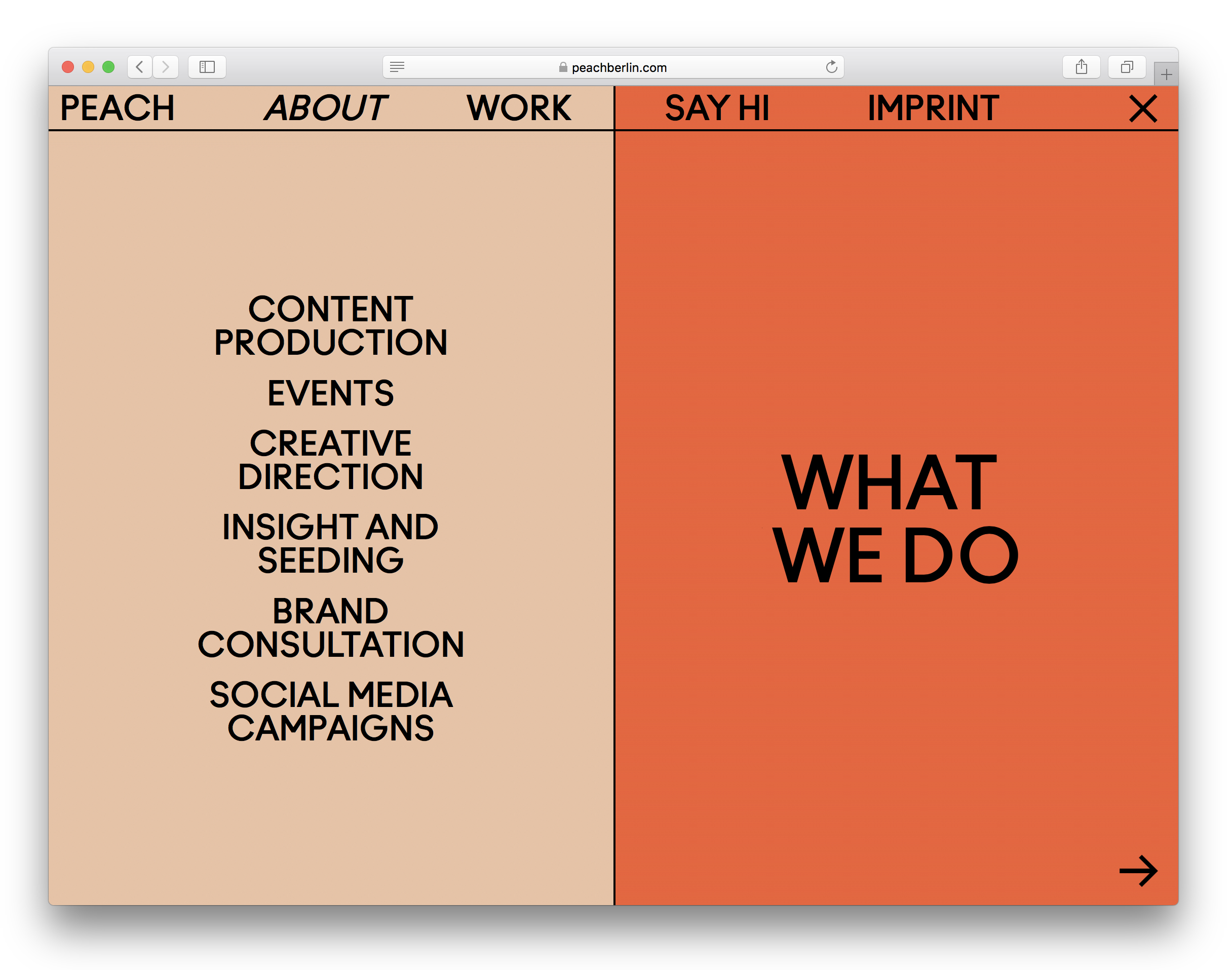 We have a decade of experience in content creation, and using our global network of collaborators and early adopters, we produce campaigns that appeal to modern tastes, trends and consumers. From conception to execution, we’ll use our finely-tuned skills in visual communication, content production and social media to do what’s right for you and your brand. — Peach