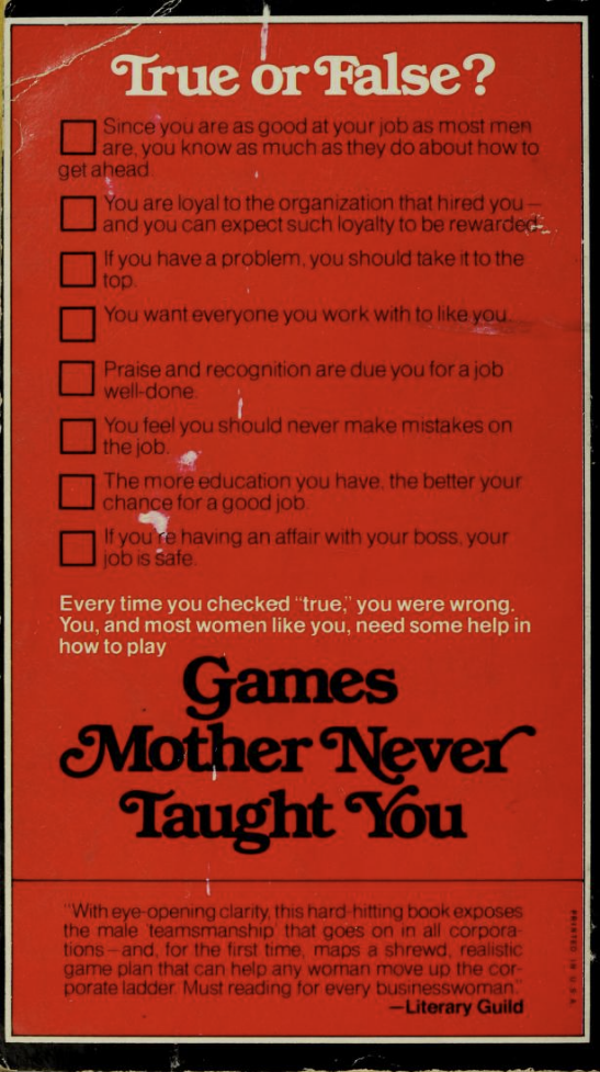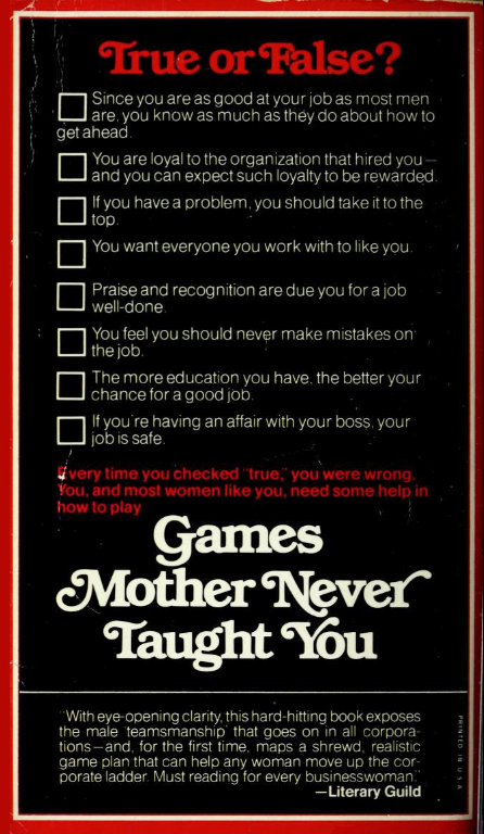 Games Mother Never Taught You. Corporate Gamesmanship for Women was written