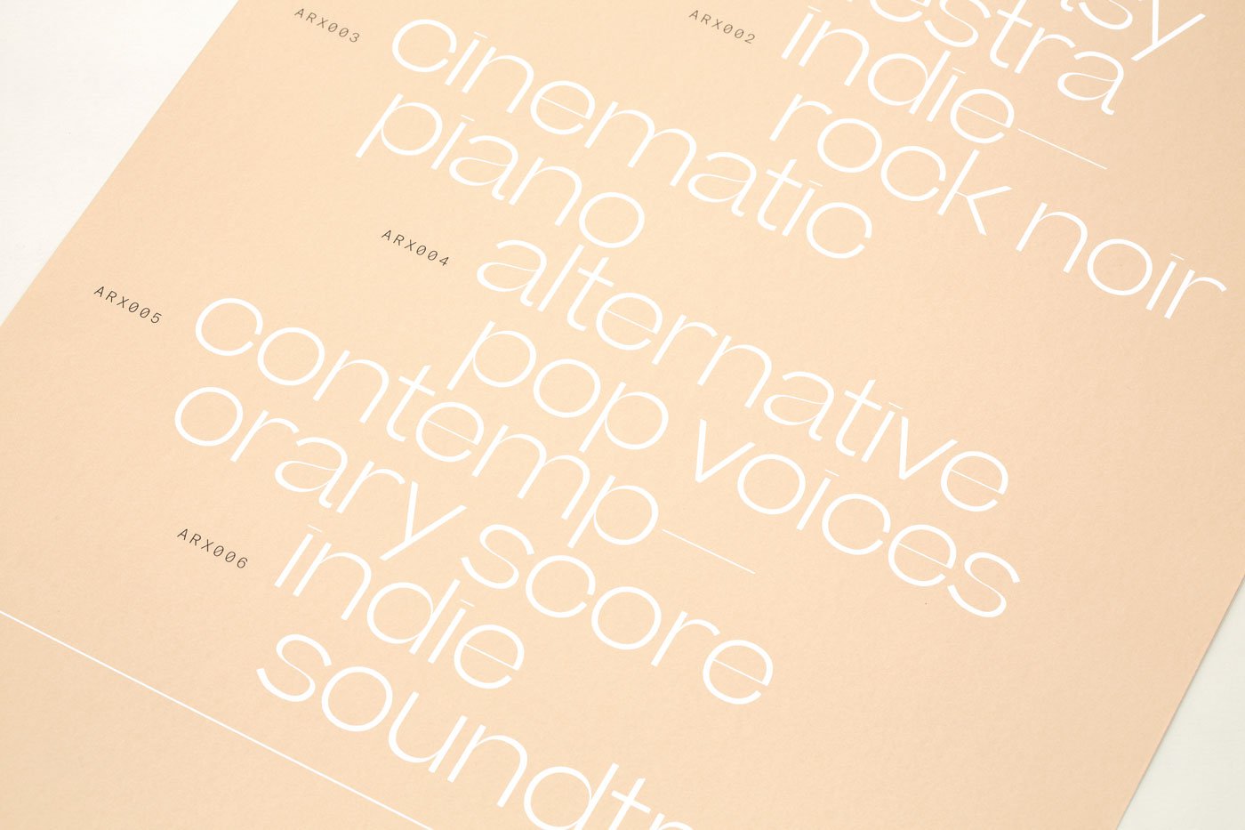 The project drew on the rich graphic heritage of library music and resolved in a flexible identity framework with a clean, contemporary feel. The high contrast Beatrice Display forms the basis of a systematic typographic approach to the album artworks. The result is cover art as complementary to contemporary pop as it is to a free jazz or minimal orchestral record. A palette of unusual mid-tones further defines the label while visually distinguishing individual albums within the expanding catalogue.