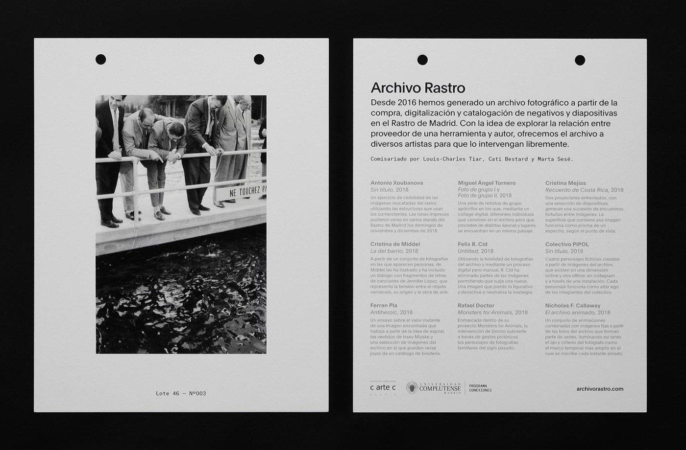 The Archivo Rastro team requested that the identity should be used both for the archive and for the graphic image of the exhibition, in addition the images of the archive should be present, but without confusing the receiver about the exhibition purpose.