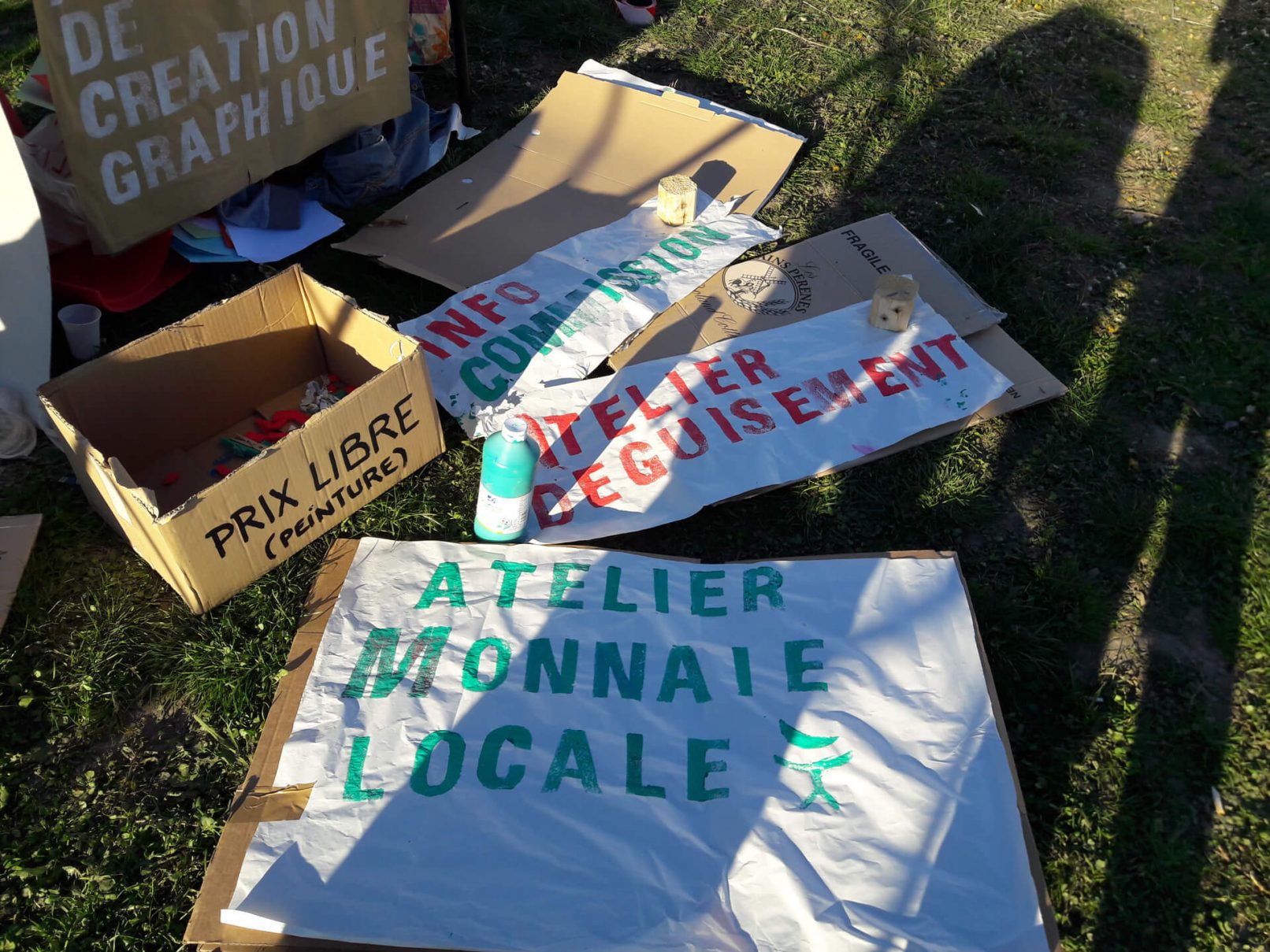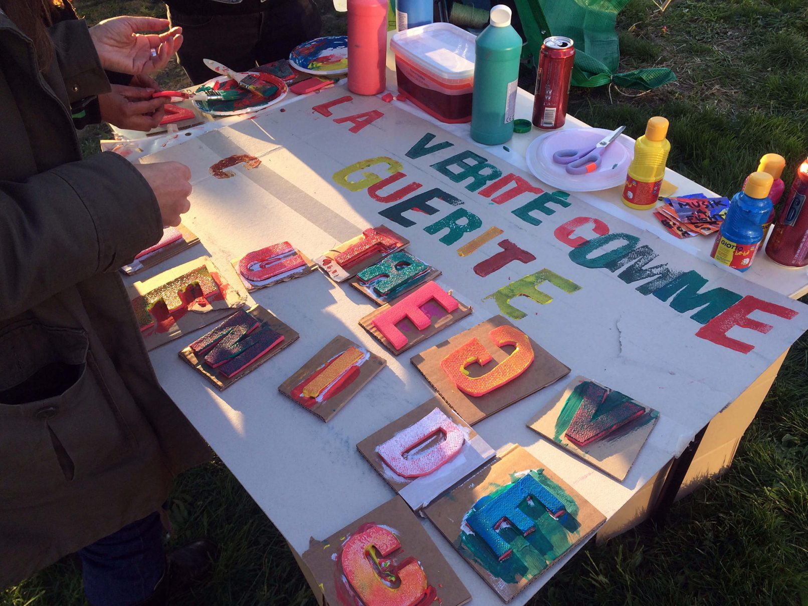 Nuit Debout is a French social movement that has been compared to the Occupy movement in the United States. During the protests in Grenoble in 2016, we spontaneously set up a slogan creation and signage workshop. It aimed to provide a simple and democratic emergency tool to facilitate the expression and writing of militant speech.