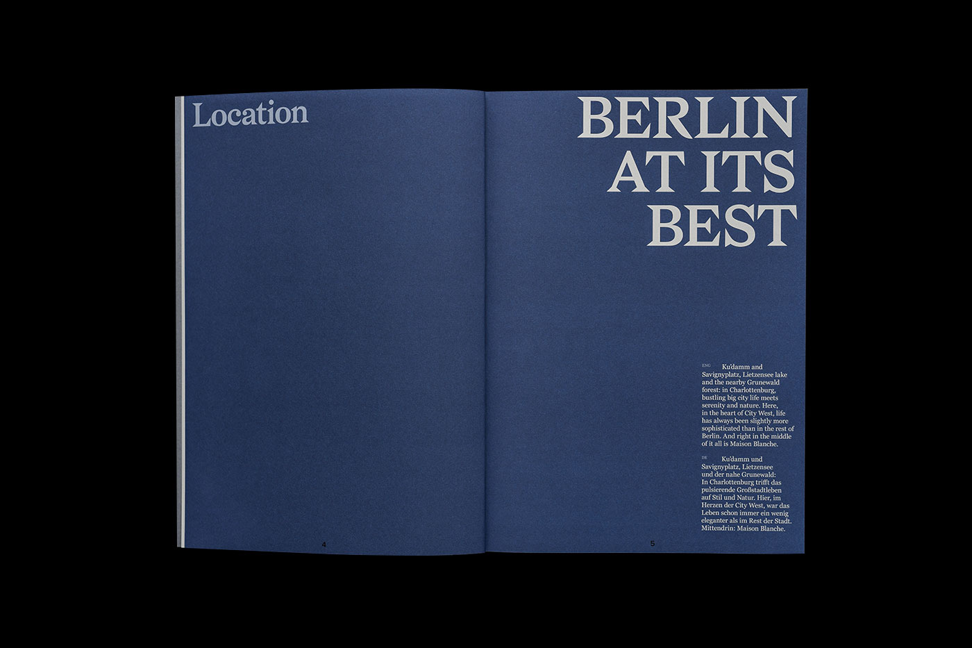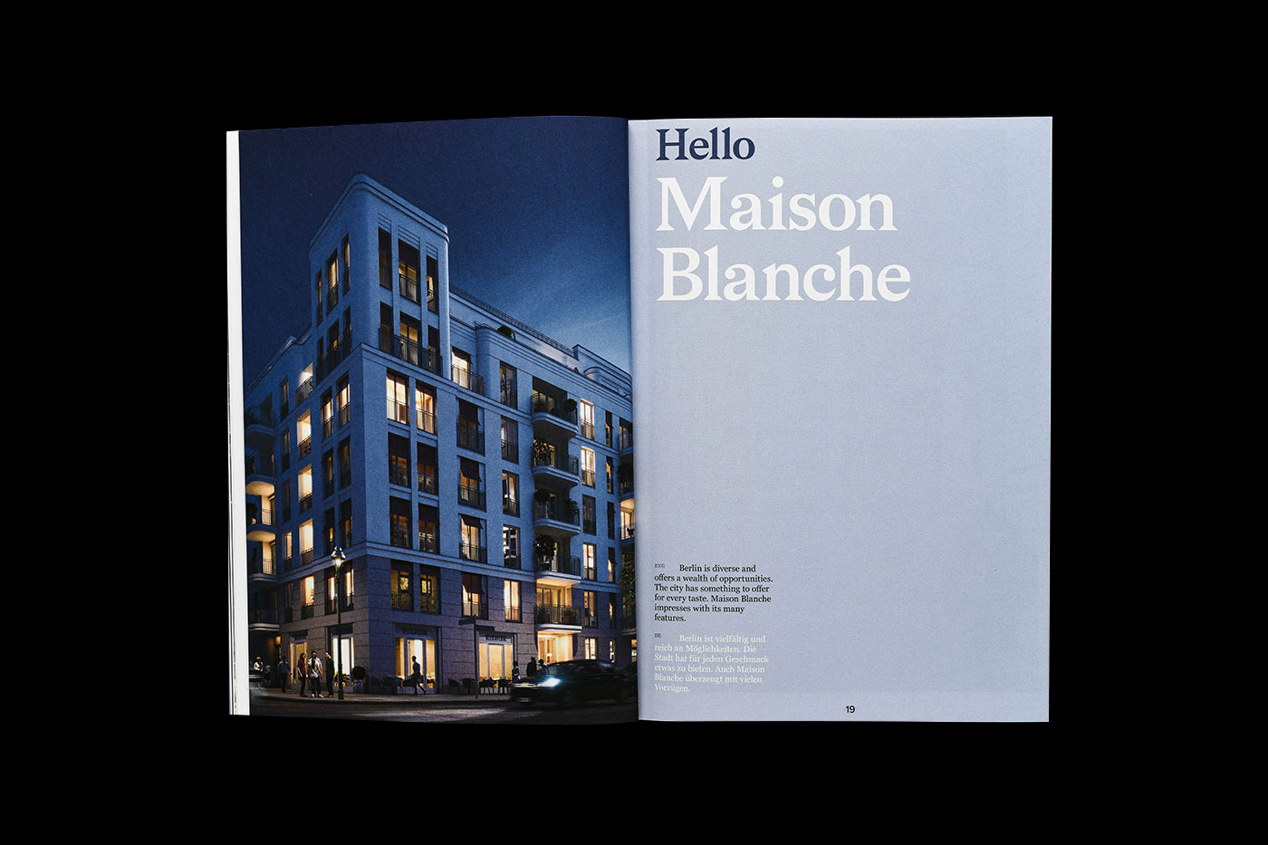 The brand identity and editorial design we designed for Maison Blanche – a new development project by Berkshire Hathaway HomeServices / Rubina Real Estate in the luxury district of Berlin-Charlottenburg – embraced the style and elegance of the surroundings to define its distinctive look.