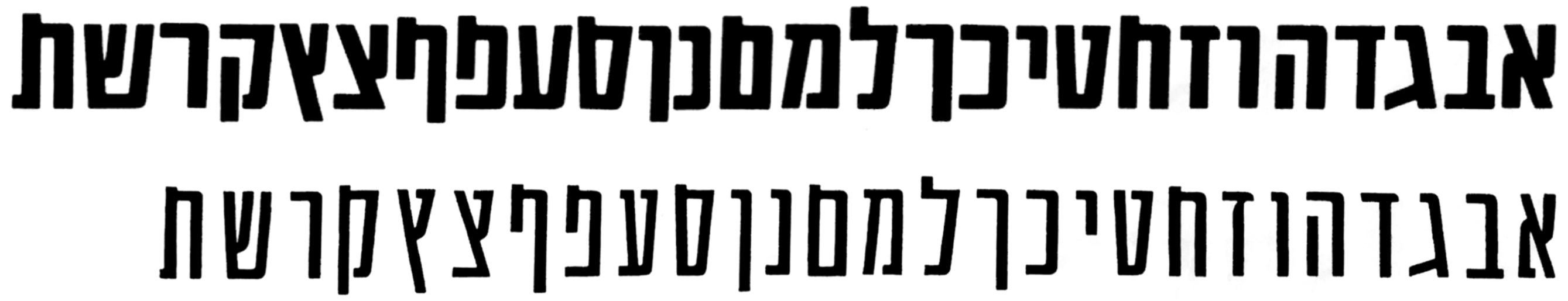 Judging from the naming and the shared numerals, Arta’s Grotesque was considered a Hebrew counterpart to Stephenson Blakes’s Grotesque No. 7 and No. 9. Letraset carried Latin versions of No. 7, No. 9, No. 9 Italic, and No. 9 Outline.