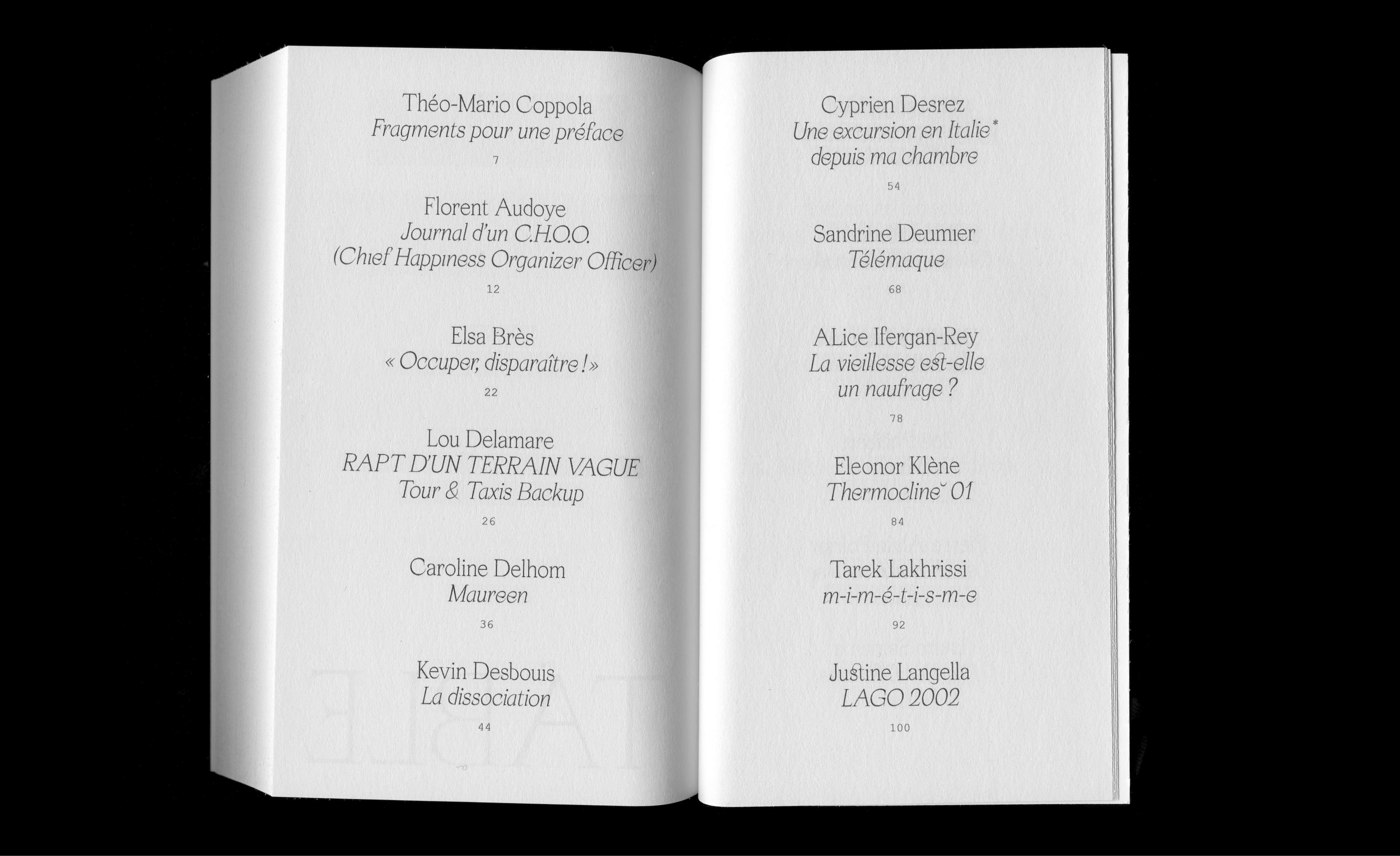 Apoc is used for titles and bigger texts. It’s paired with GT Super Text for body text and Courier New for page numbers.