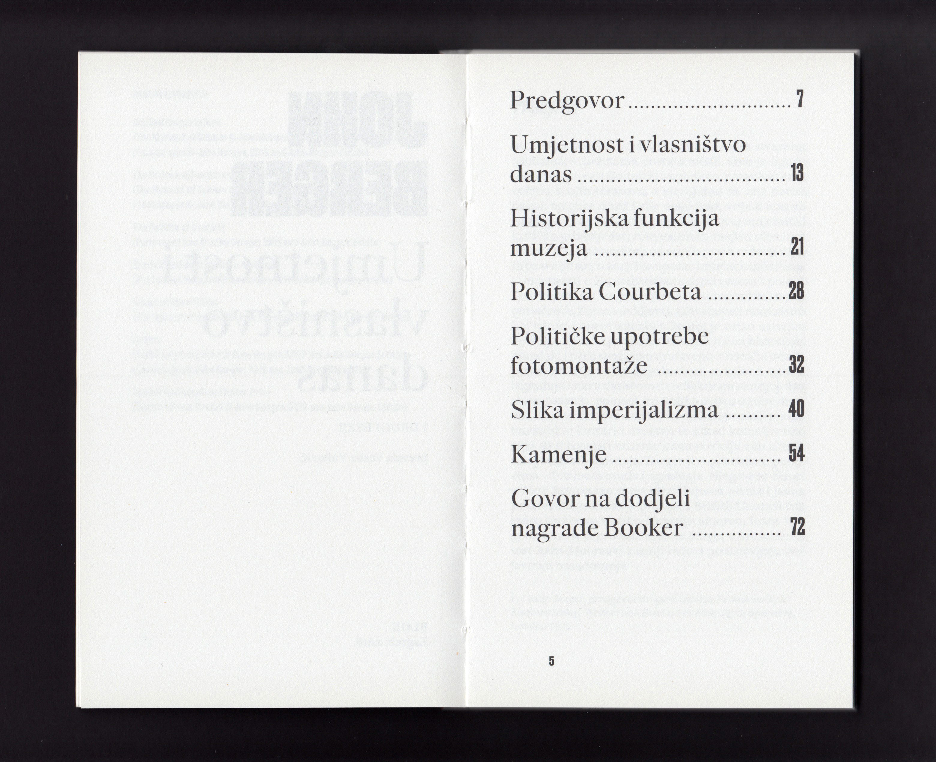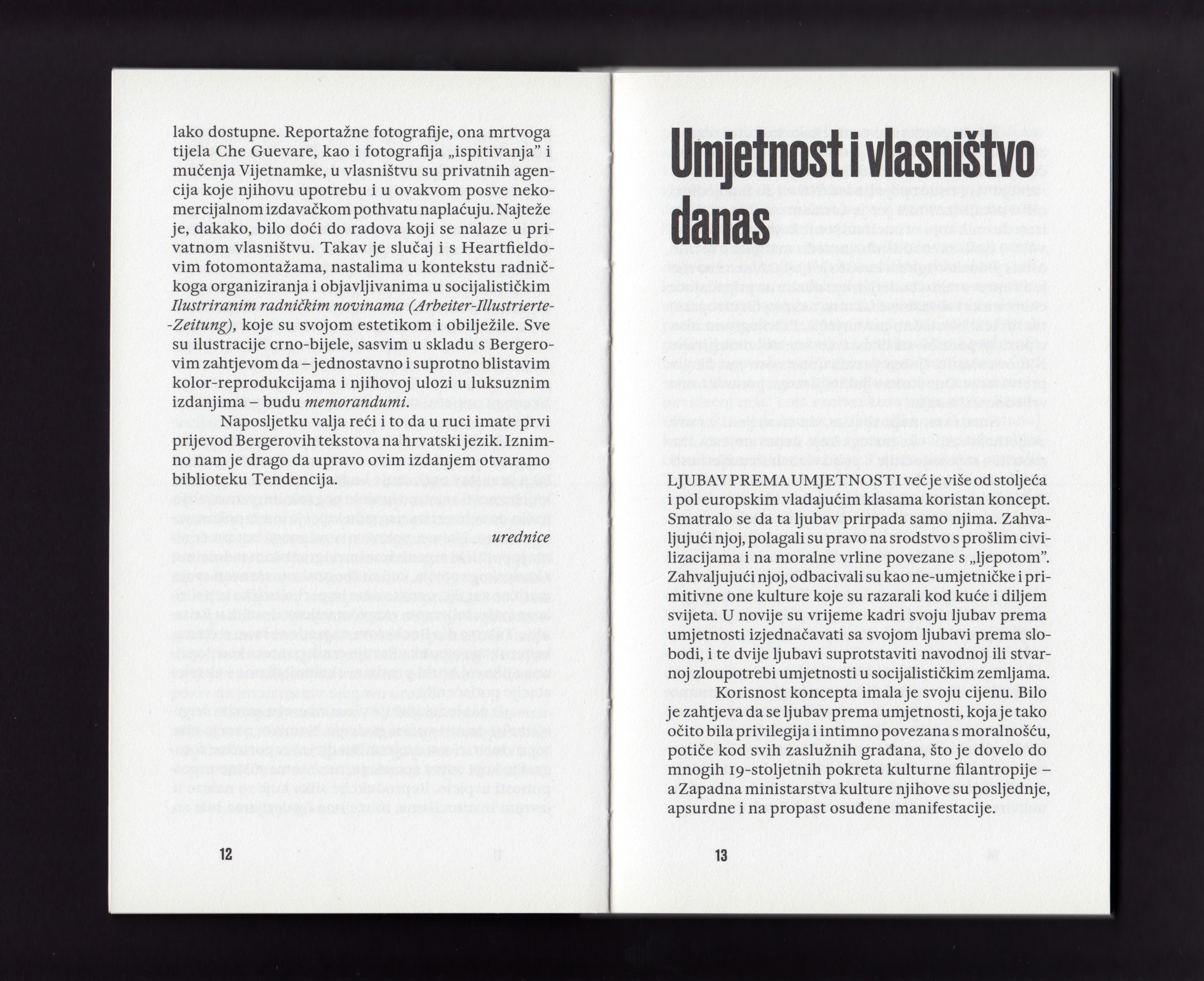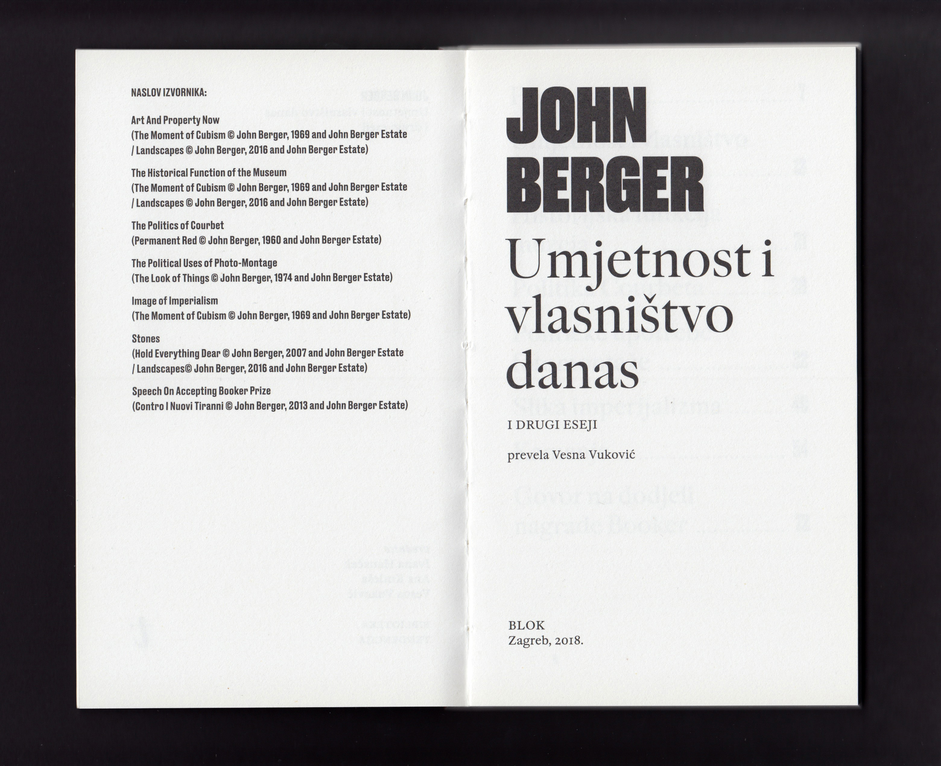 This book is a collection of essays by John Berger, named after one of them: ‘Art and Property Now’. It is the first Croatian translation of Berger published in book form. It is also the first book in a newly founded series called ‘Tendencija’ (eng. tendency) which will deal with topics like art in the real world, the political aspects of art and the potential of the artist as an activist. The book was published by BLOK with support from the Rosa Luxemburg Stiftung.