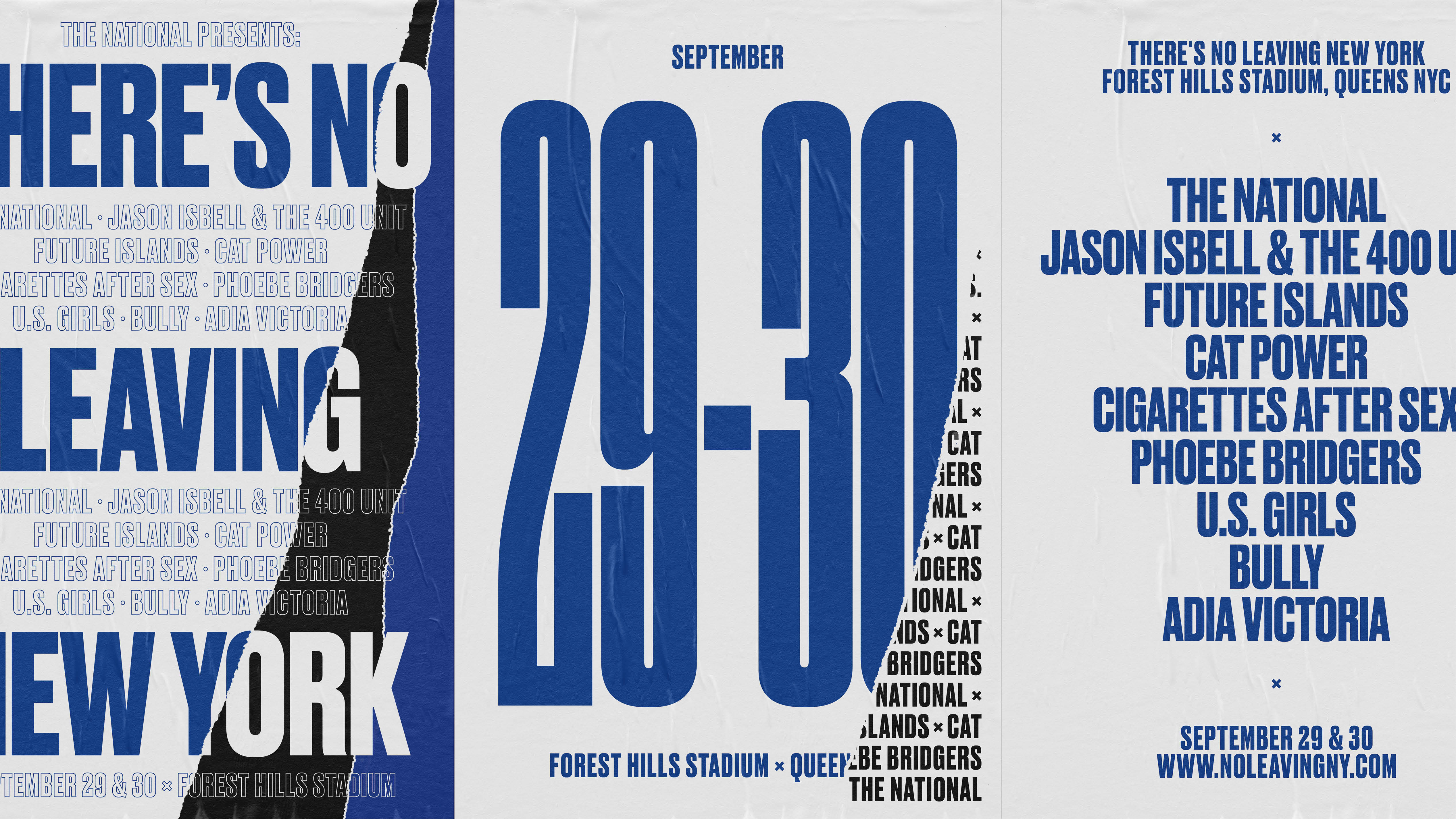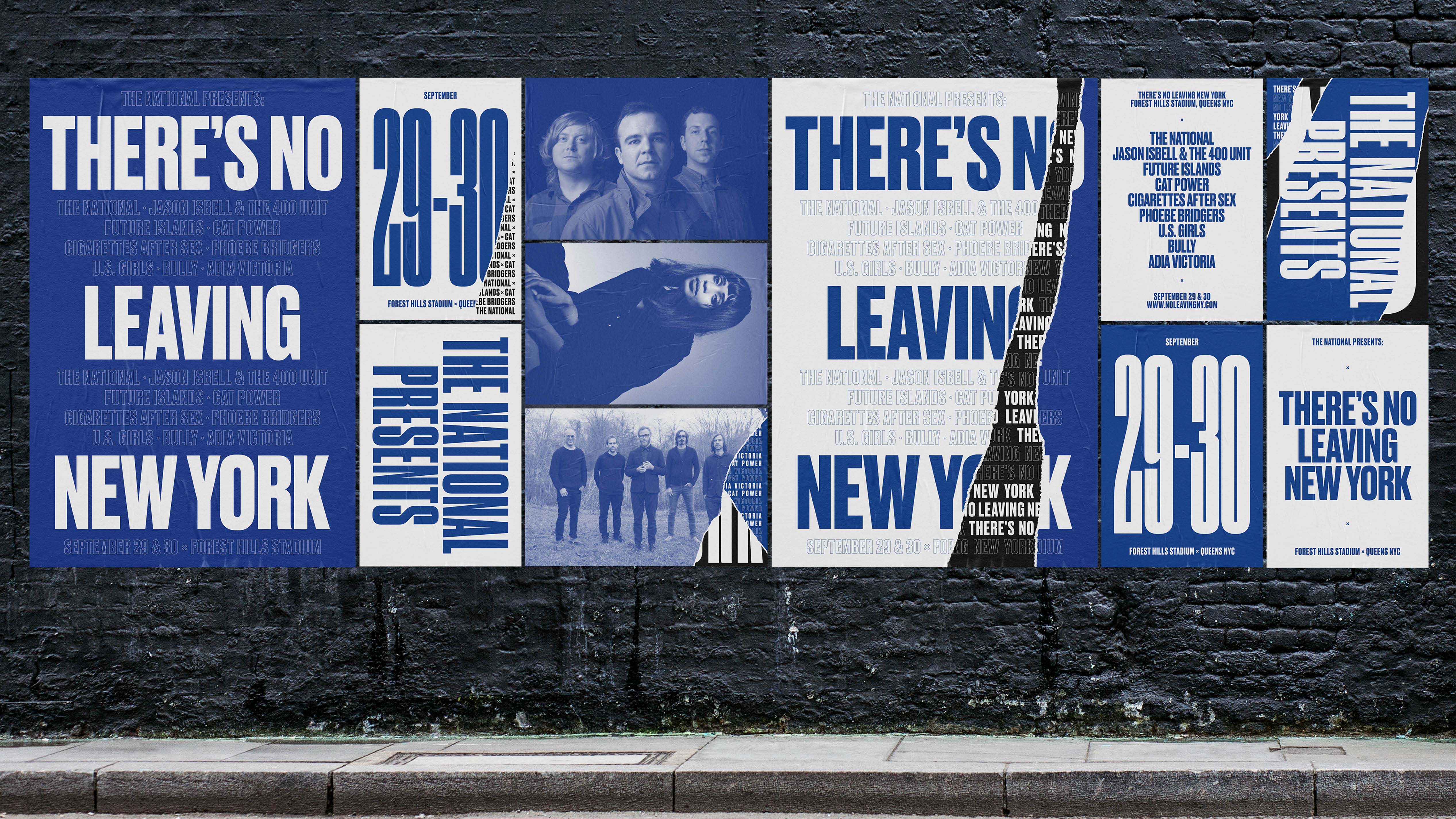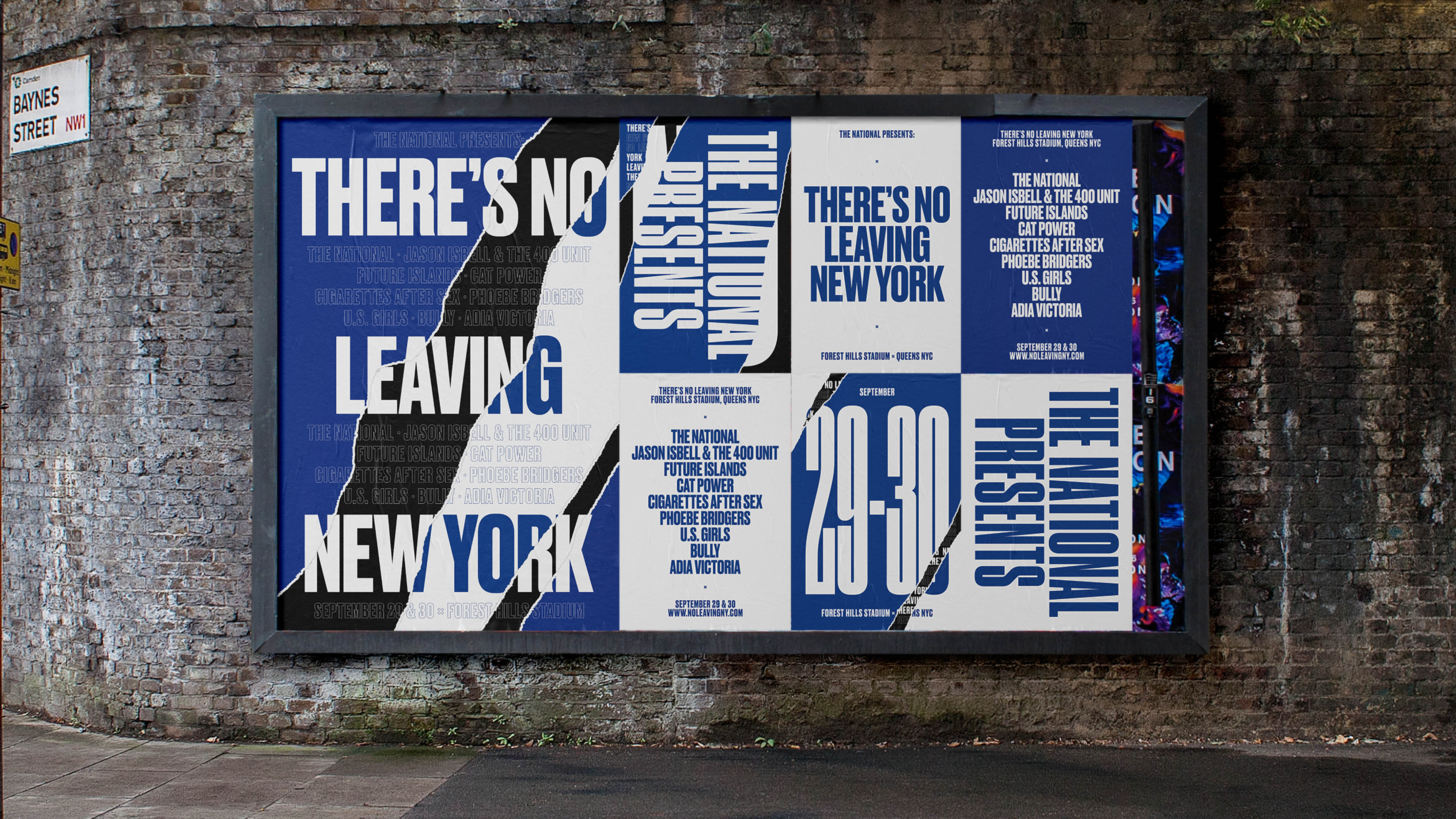 Friends of the studio, The National, hit us up to design everything for their 2018 festival, There’s No Leaving New York. Inspired by the layered wheatpaste tapestry of New York, we pitched them a flexible typographic design system, that looked rad on everything from festival swag, to animations and (of course) wheatpasted posters. They dug it, and we blanked the city with these. The posters were actually so cool, that many of them were stolen off the streets (we might have taken one or two ourselves).