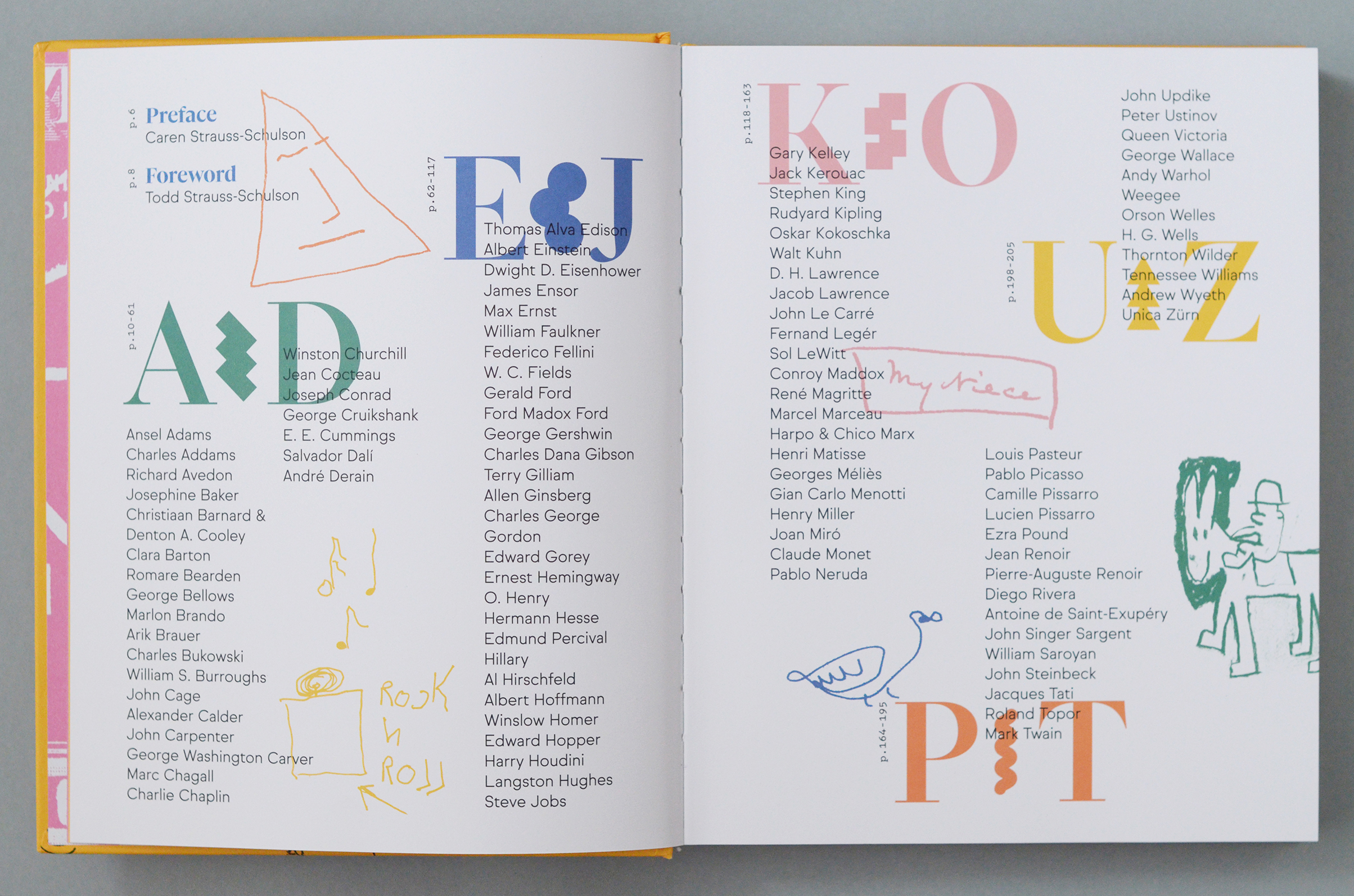 Scrawl presents “Sketches, drawings, and scribbles from the private letters and notebooks of some of the greatest names in history” as collected by The Strauss Schulson family. Published by Rizzoli: