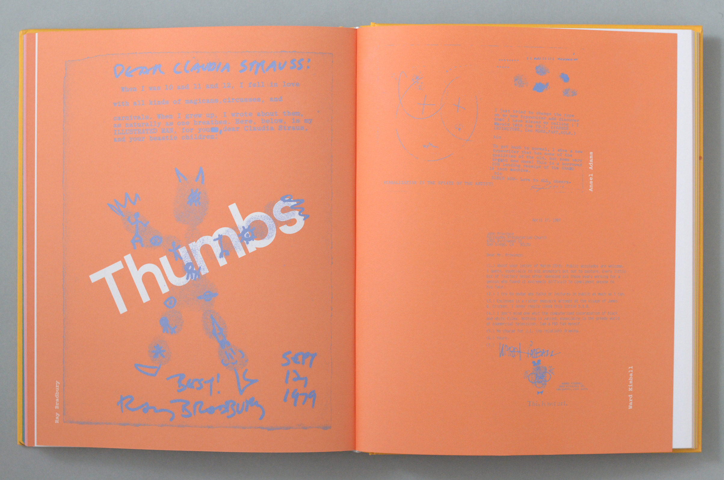 Designers Brankica Harvey and Dan Keegan (associate partners at Pentagram / Eddie Opara) present the collection in a design that is both rigid – as a counterbalance to the lightness of the sketches – but also loud, using color blocks and playful typography in order to amplify that same lightness.