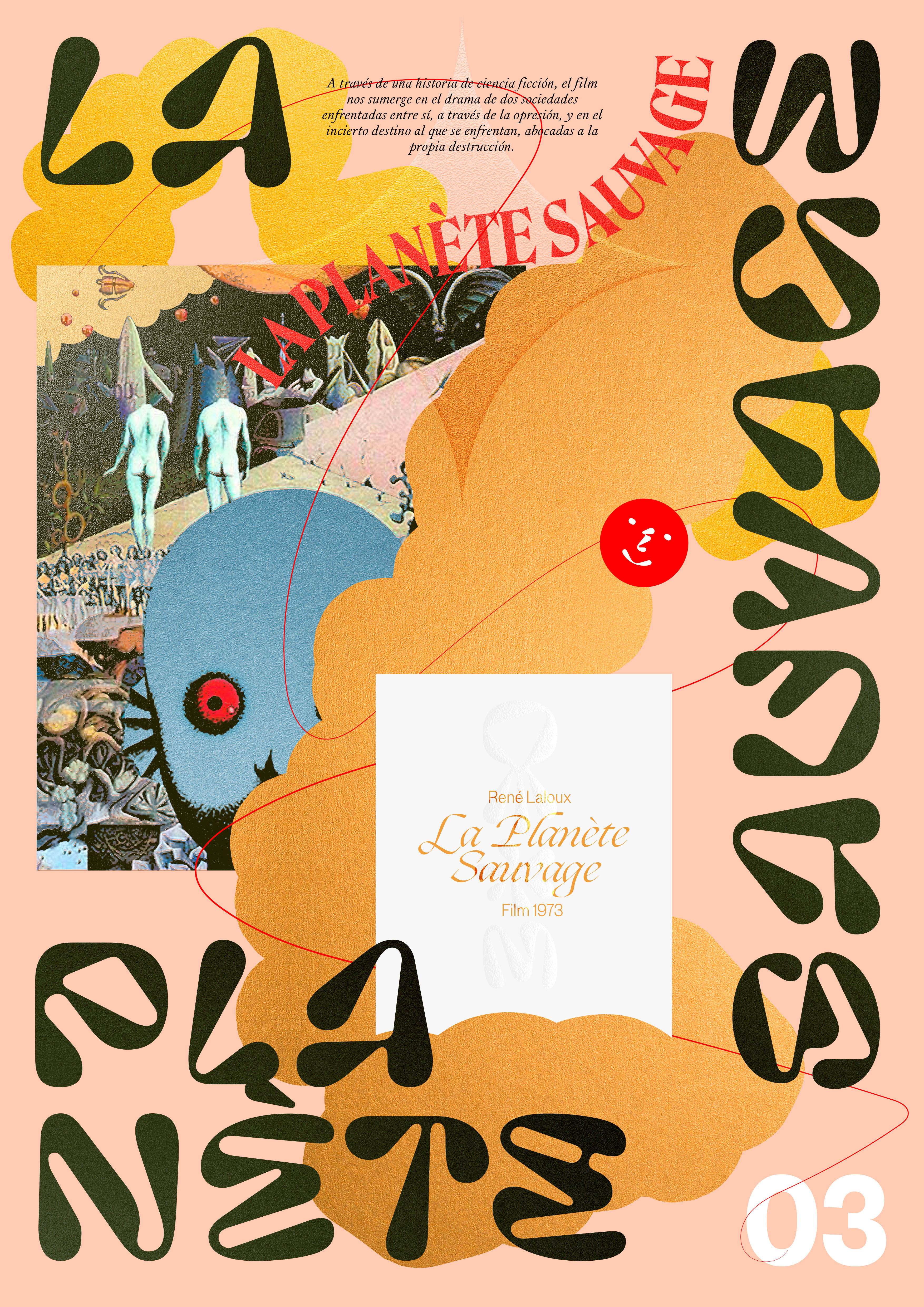 Fictional poster for science fiction movie Fantastic Planet (René Laloux 1973). The big type is Pilowlava, designed by Jérémy Landes and Anton Moglia, available from Velvetyne Type Foundry.