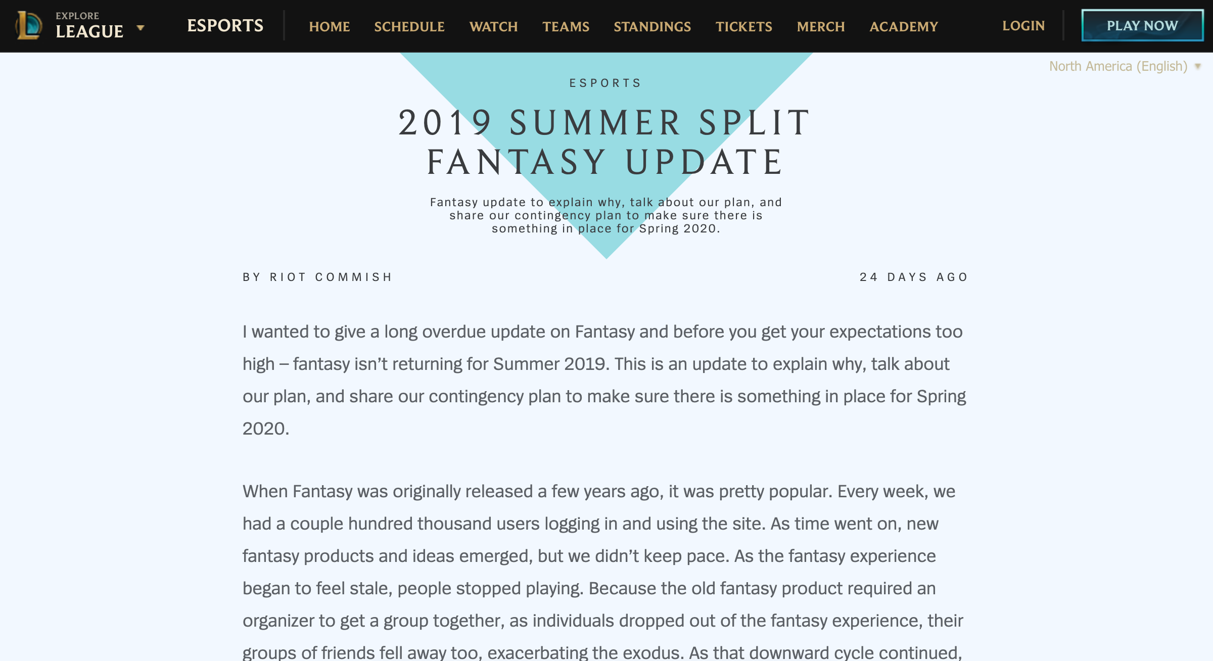 “League of Legends is a popular multiplayer online battle arena game. … League of Legends was generally well received upon its release in 2009, and has since grown in popularity, with an active and expansive fanbase. By July 2012, League of Legends was the most played PC game in North America and Europe in terms of the number of hours played.” — Wikipedia